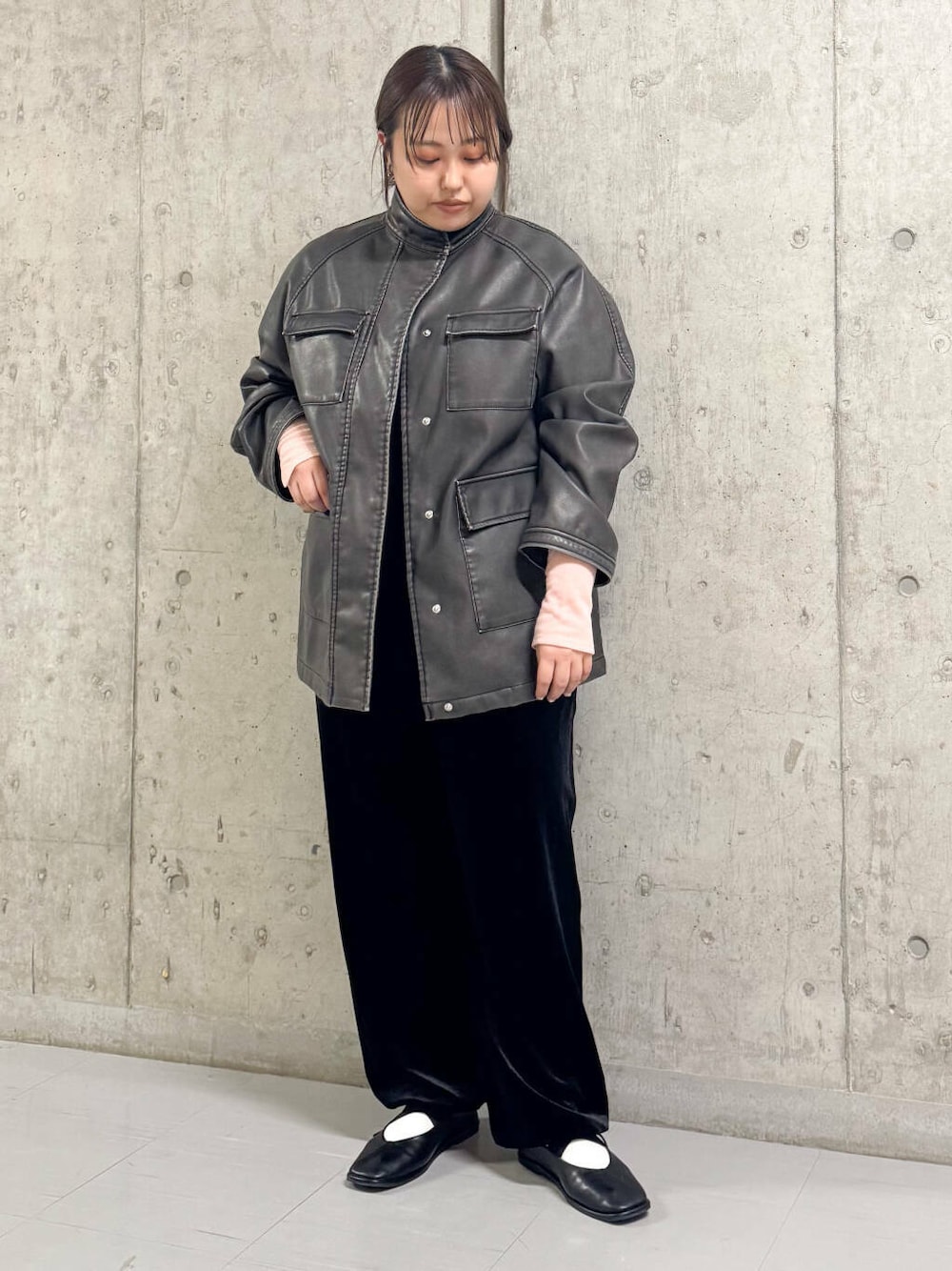 ウォッシュ加工を施し、ヴィンテージ感のある風合いに仕上げたフェイクレザージャケット。フロントにデザインされたポケットが特徴的で、容量もたっぷり入り機能的です。腰回りをカバーしてくれるミドル丈はラフに羽織りやすく、大人カジュアル且つモードな雰囲気を演出する1着です。