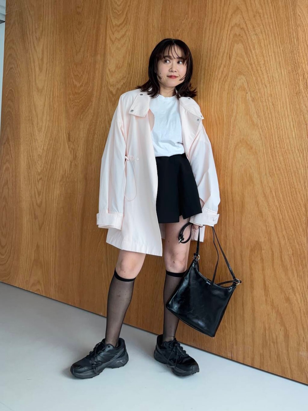 カジュアルなデニム~チェック柄スカート、スラックスまでいろんなボトムと合わせていただけます。ハーフ丈なのでショートパンツ合わせもおすすめ。ウエスト部分のドロストをきゅっと絞るとスタイルアップも叶います。