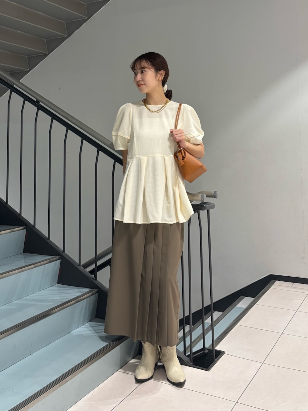 一部分のみプリーツ加工を施したアシンメトリーデザインがポイントのスカート。無駄を省いたシンプルな仕様なので、様々なトップスと相性良く着ていただけます。すっきりとしたシルエットなので、ボリュームのあるニットやトップスとマッチします。女性らしいレースアイテムを合わせるとモードな雰囲気にもなります。