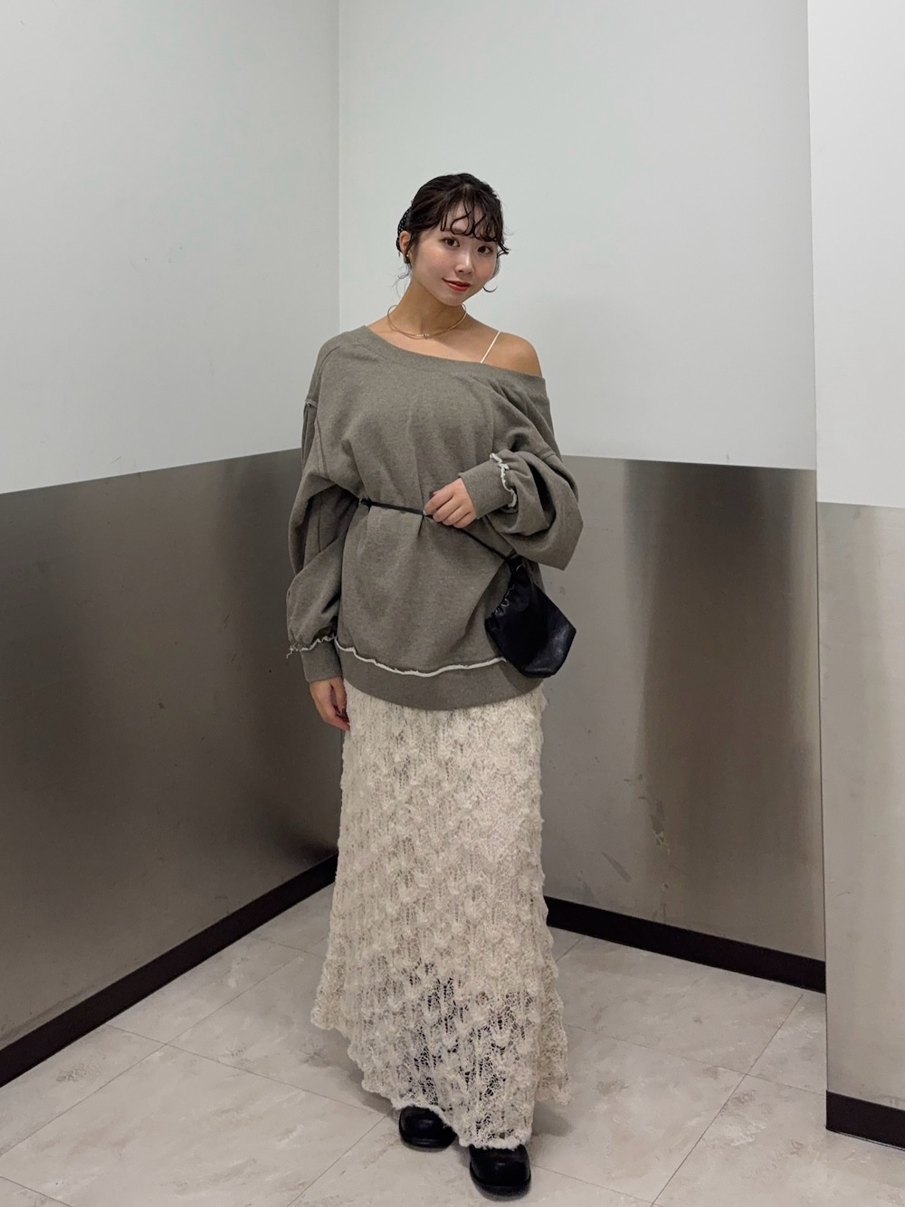 ニュアンスカラーな杢目調に仕上げた、前後2WAY着用可能なスウェット。ルーズなサイズ感ながらもフロントはVネックで首元をすっきりとさせ、抜け感をプラスしました。また、クルーネックとしても楽しめます。袖や裾のカットオフ仕様もこだわりのポイントです。インナーにタンクトップを入れると、少しモードで女性らしい着こなしが期待できます。