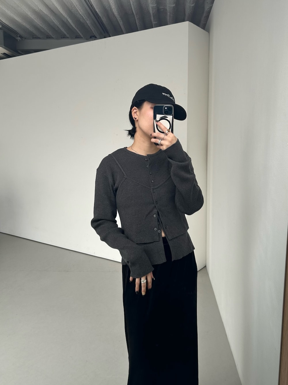 肌触りの良い素材を使用したクルーネックカーディガンと、取り外し可能なビスチェがセットになったお得なアイテム。フィット感がありつつも、肩やアームホール、バストラインにかけて少しゆとりを持たせました。セット使いはもちろん、別々でも使用いただけるので、様々な着こなしが楽しめます。