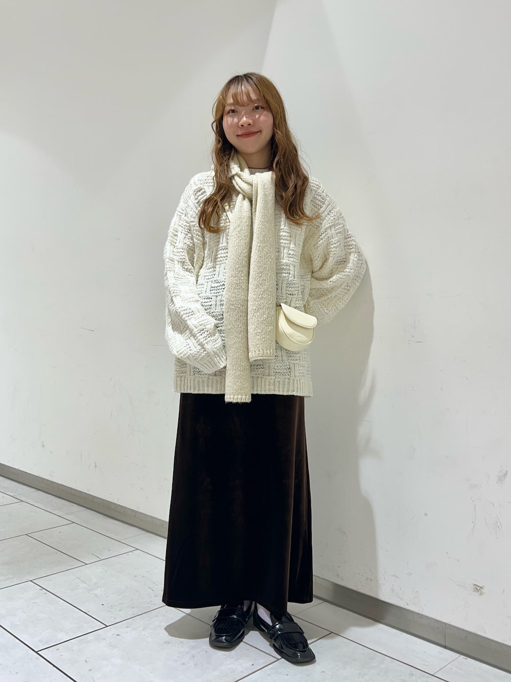 肌触りの良いふんわりとした素材と、ぽこぽこと立体的な編地が特徴的なニット。レイヤードを楽しめるクロップド丈、少しメンズライクな印象のロング丈と2サイズ展開になっております。どんなボトムにも合わせやすいIVORYとCHARCOALをご用意しました。
