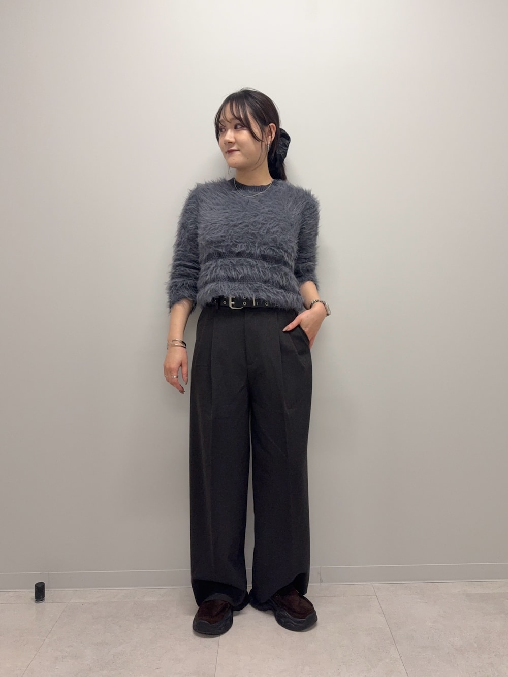 【肌触りが良く女性らしい落ち感のあるシャギーニット】