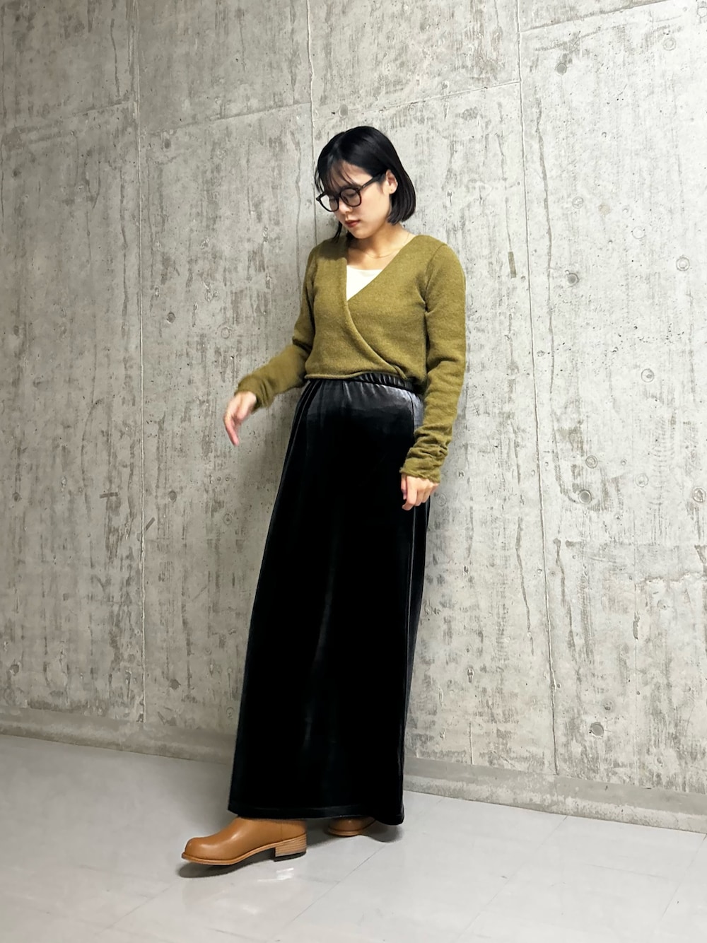 程よく温かみのあるモヘアライクな糸を使用したニット。カシュクールデザインになっており、いつもの着こなしに新鮮さをプラスしてくれます。深Vネックは、レースやシアートップス、プリントTEEと好相性。長めの紐はぐるりと腰に巻いていただくのがおすすめです。