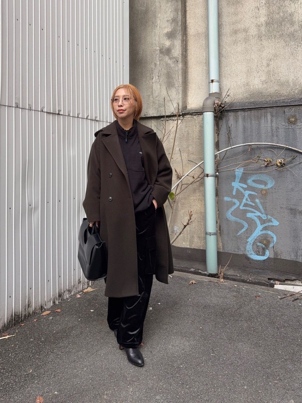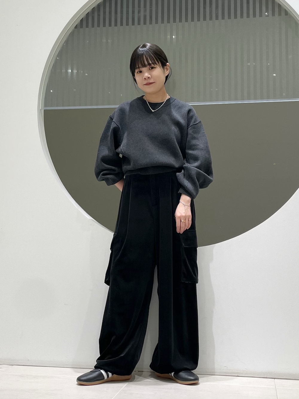 トレンドのベロア素材とカーゴデザインパンツを組み合わせた、大人カジュアルコーデにおすすめの1着。程よく厚みがあり、少し丈感を短く設定しております。裾が絞れる2WAY仕様になっており、そのまま穿いても美シルエットが叶うよう仕上げました。トップスをタックインしたりコンパクトなアイテムを合わせたり、パンツのデザインが活きるスタイリングがぴったりです。