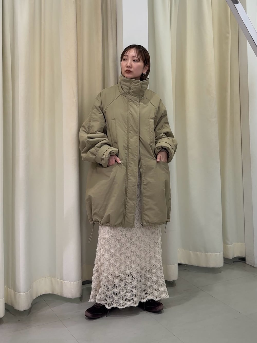 ポコポコした透かし編みがポイントのニットスカート。スラブ糸で立体感のある編地が冬らしく、ペチコート付きなので1枚着のみならずレイヤードスタイルにも最適です。様々なスタイリングが楽しめる1着に仕上げました。