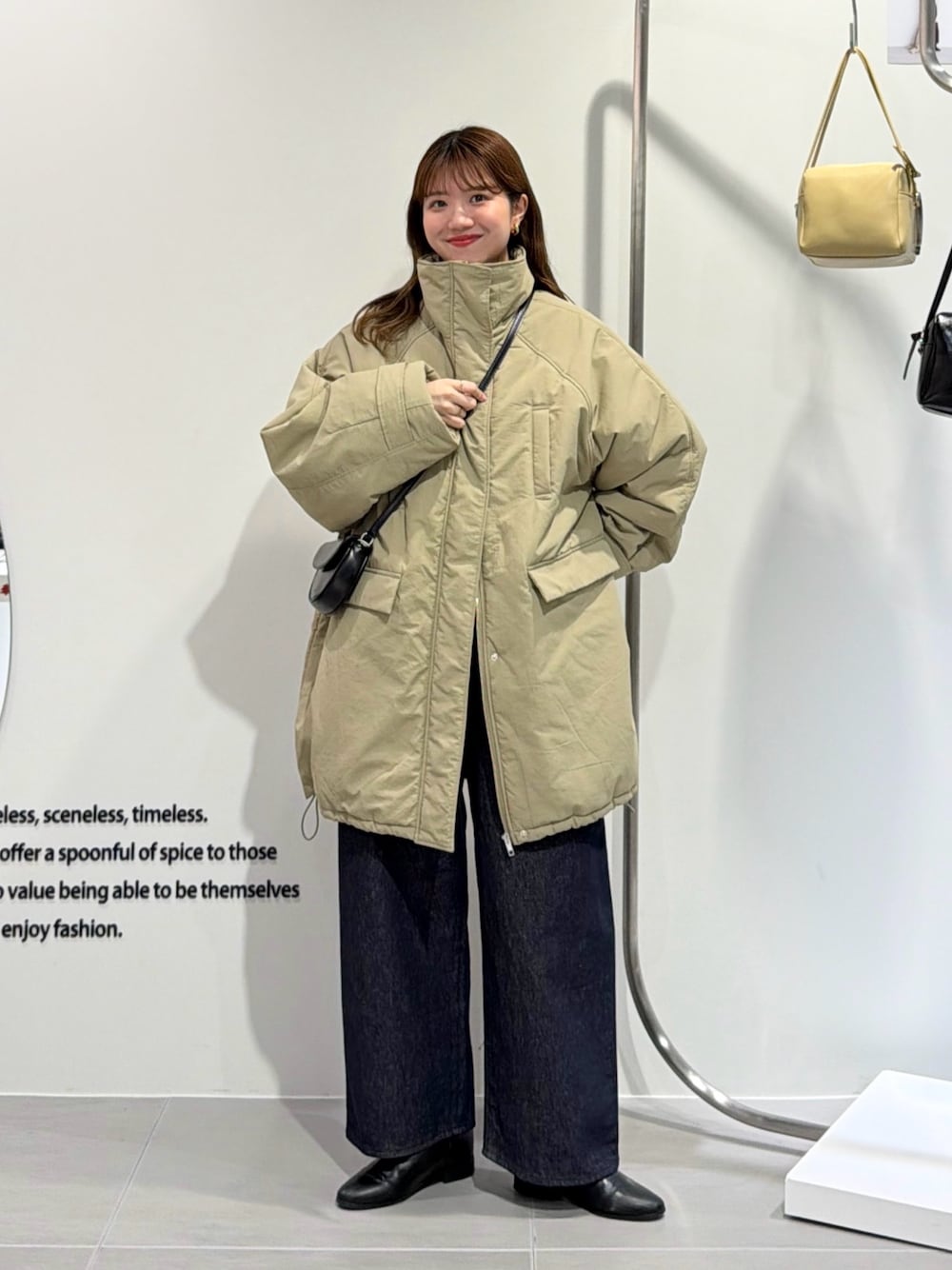 たっぷりとしたボリュームのあるモンスターコート。中綿を薄手にすることで大きめのサイズ感ながら着膨れせずにすっきりと着ていただけます。軽い羽織り心地と暖かさを兼ね備えたところも嬉しいポイント。そのまま着ていただくのはもちろん、裾を絞るとシルエットの変化も楽しめるアイテムです。