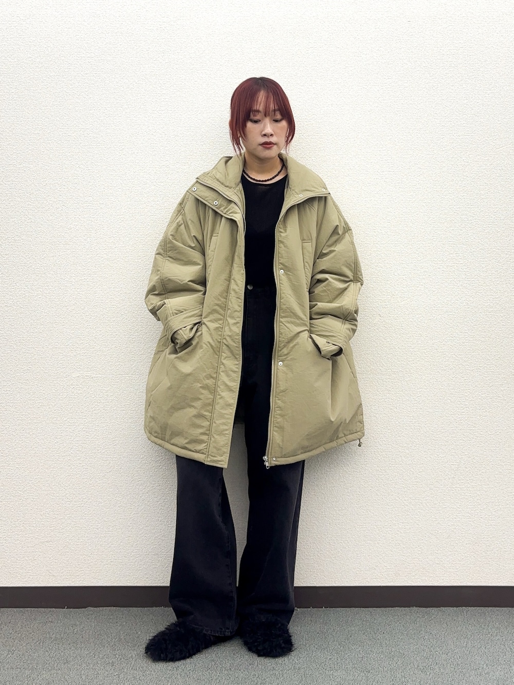 たっぷりとしたボリュームのあるモンスターコート。中綿を薄手にすることで大きめのサイズ感ながら着膨れせずにすっきりと着ていただけます。軽い羽織り心地と暖かさを兼ね備えたところも嬉しいポイント。そのまま着ていただくのはもちろん、裾を絞るとシルエットの変化も楽しめるアイテムです。