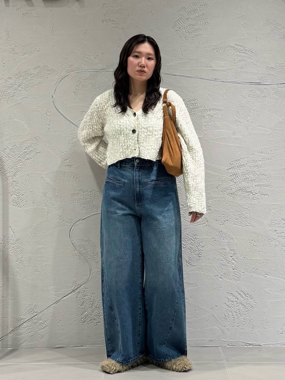 毛足の長いファー素材を使用したラウンドシューズ。毛足が地面に付かないよう、少しヒールを付けました。全体的に柔らかく仕上げているので履きやすさにこだわりました。ベーシックコーデに映える1足です。