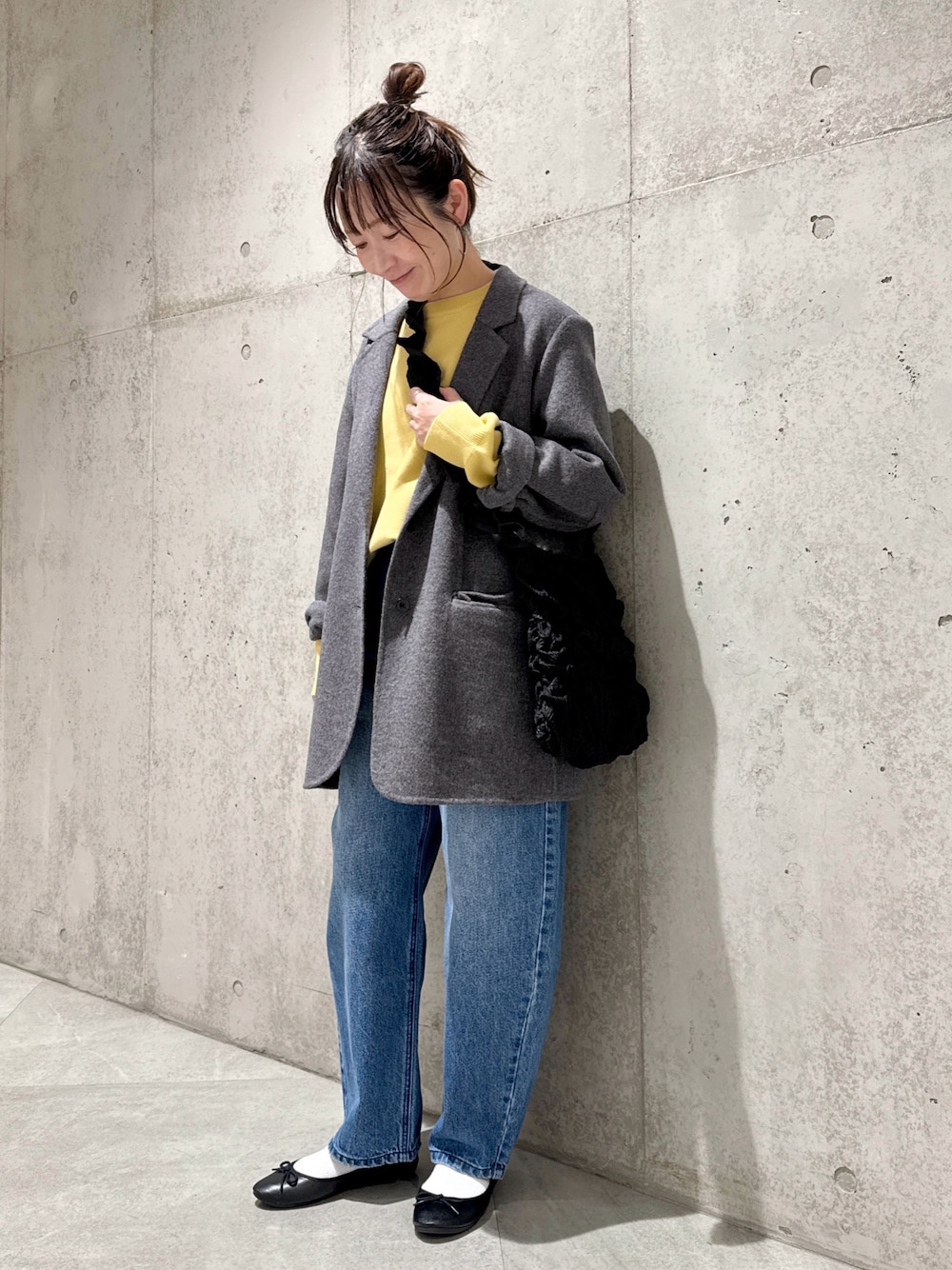 ボリュームのあるアイテムなので、トップスはすっきりとしたアイテムやショート丈が好相性◎