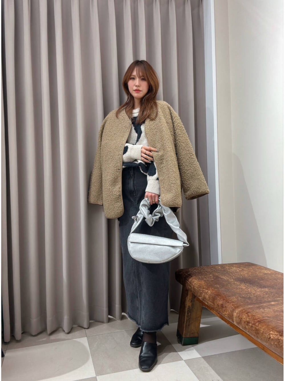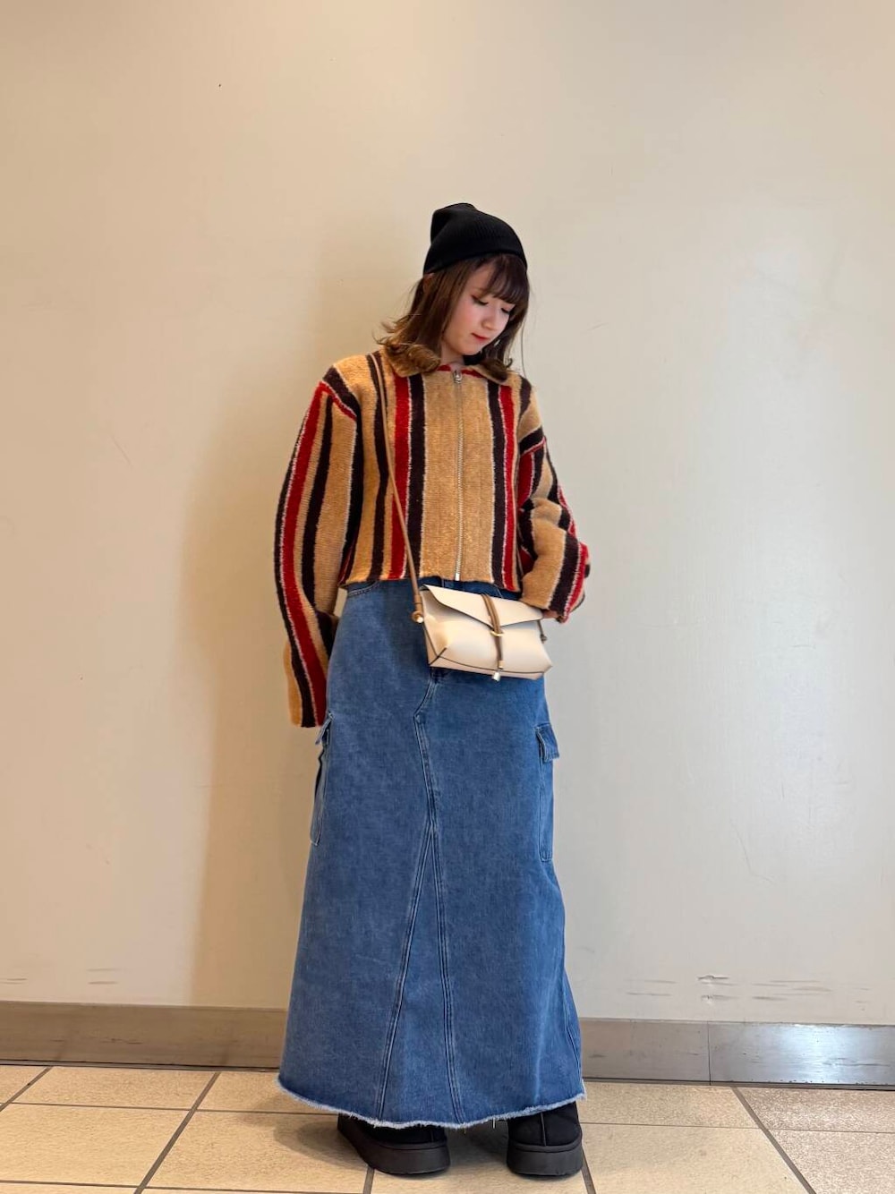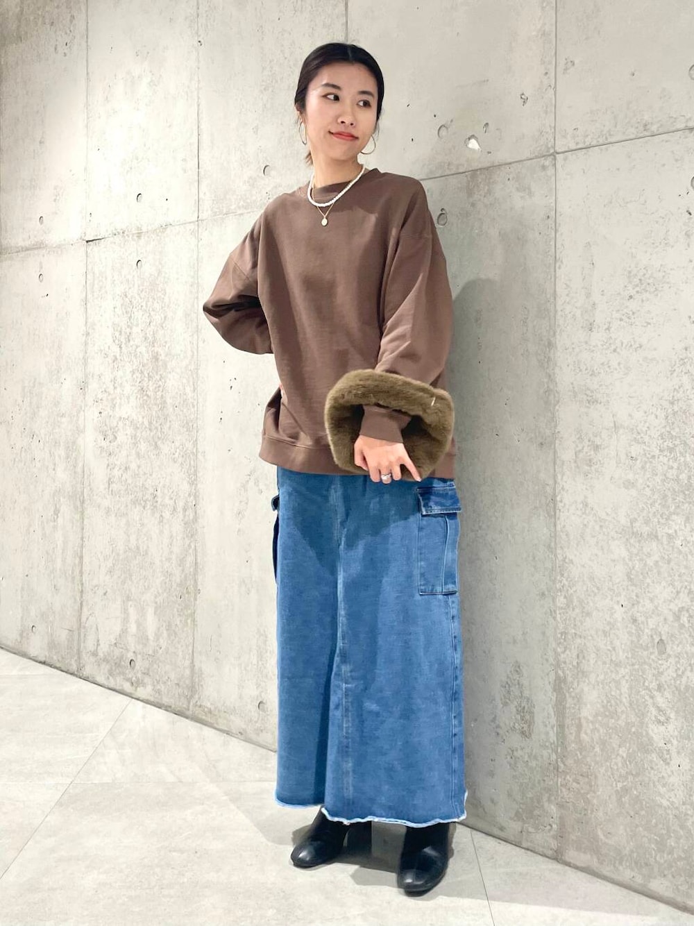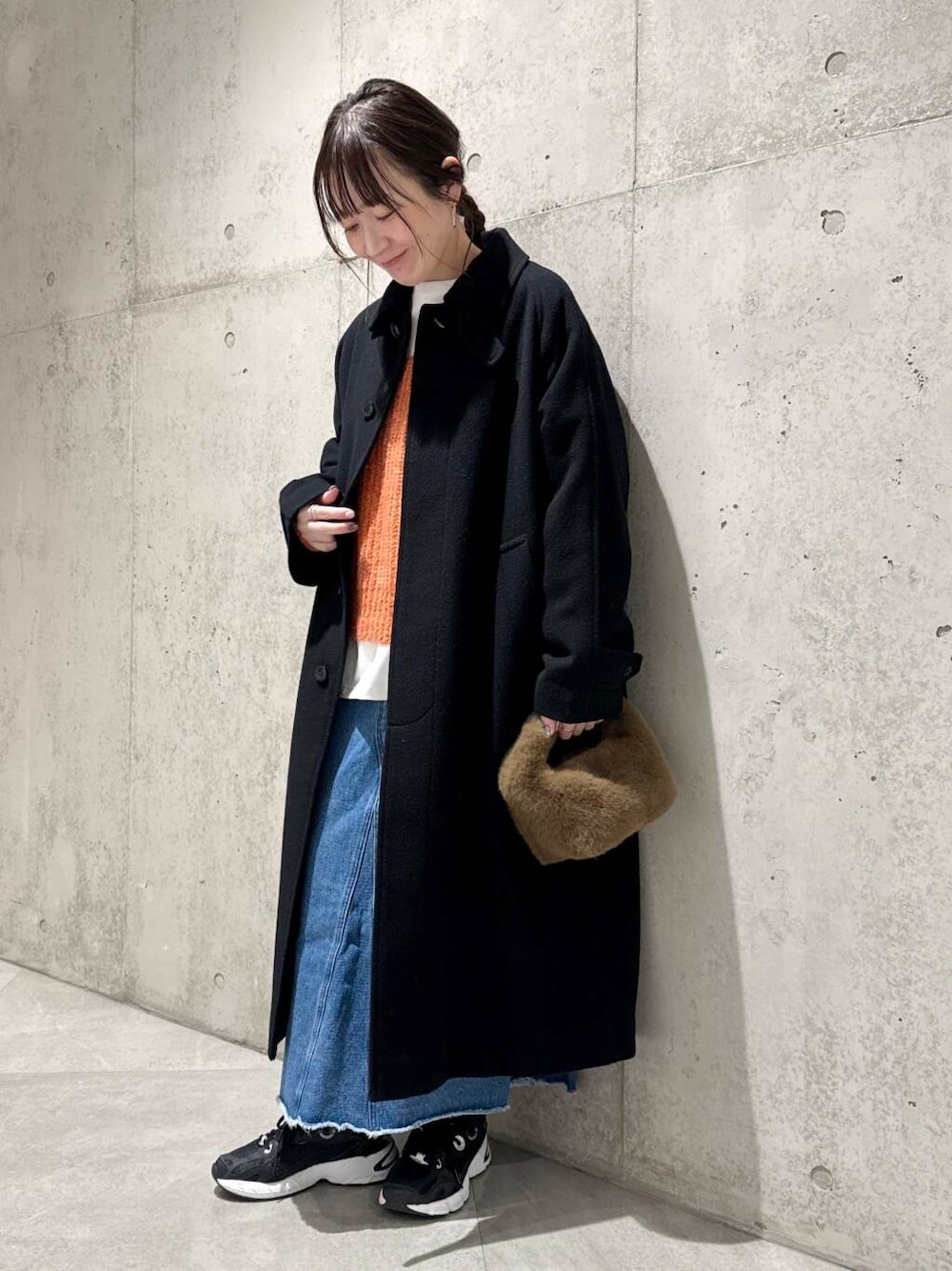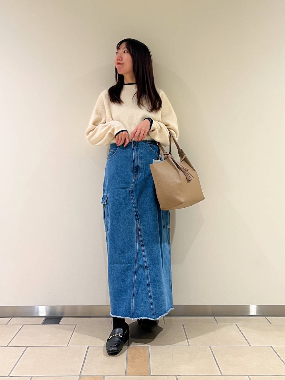 広がりすぎないシルエットなので、ボリュームのあるニットやアウターともバランス良く着られます◎