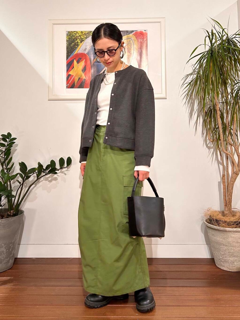 カットソーや薄手のニットとも合わせやすい素材感で、長いシーズン着用いただけます。