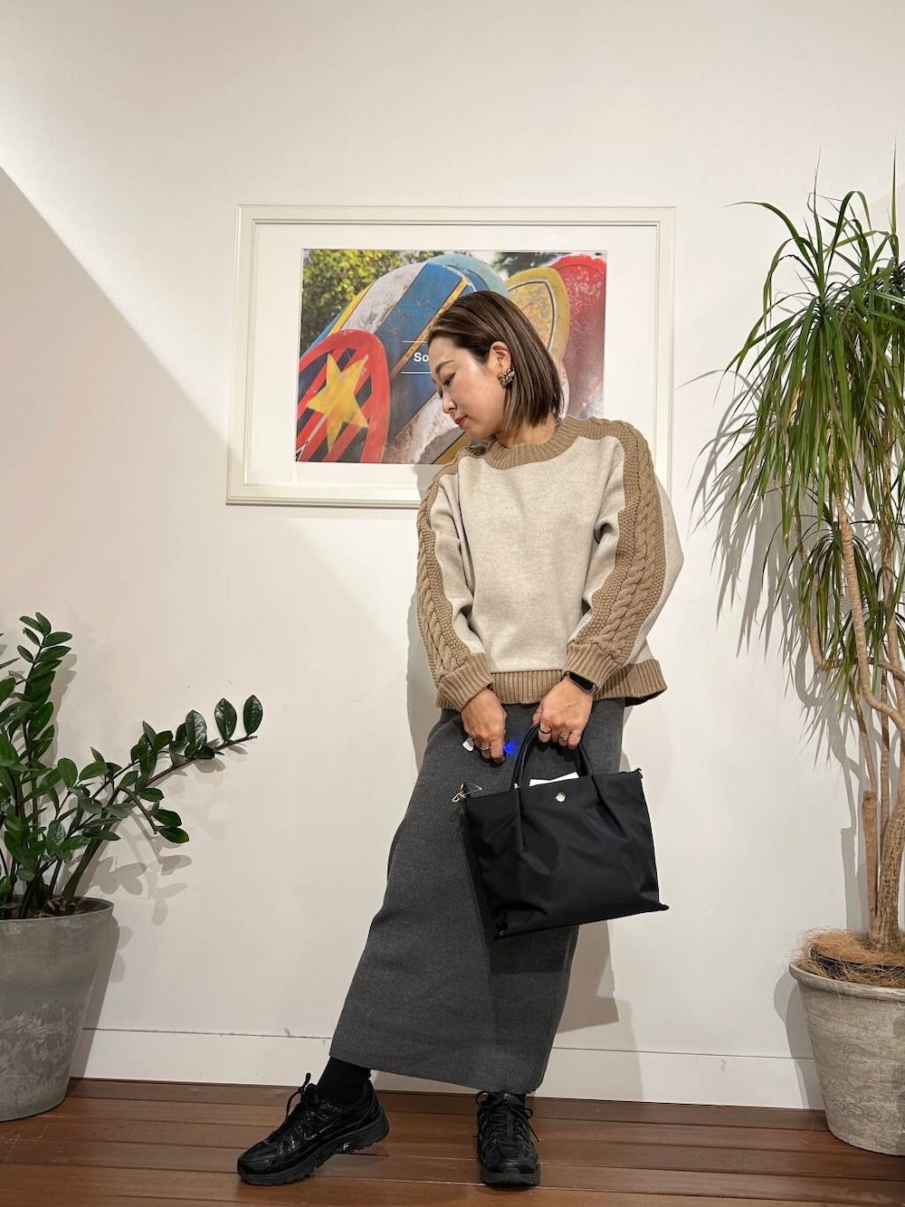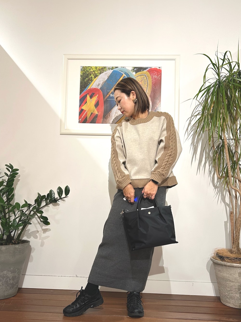 スカートにもパンツにも合うバランスのよい着丈。柄アイテムと好相性なのはもちろん、袖部分にデザイン性があるのでシンプルなボトムスと合わせてもサマになります。