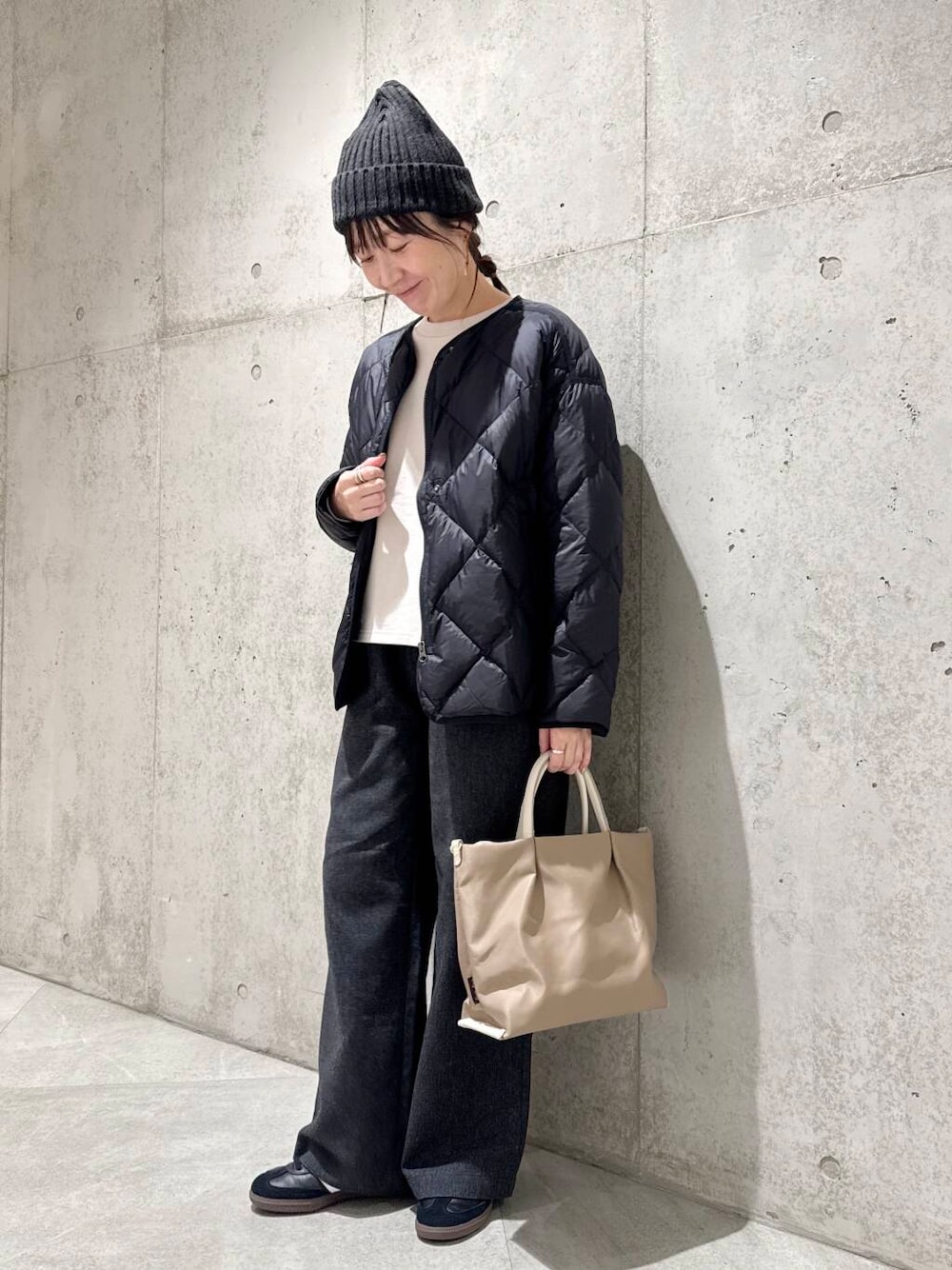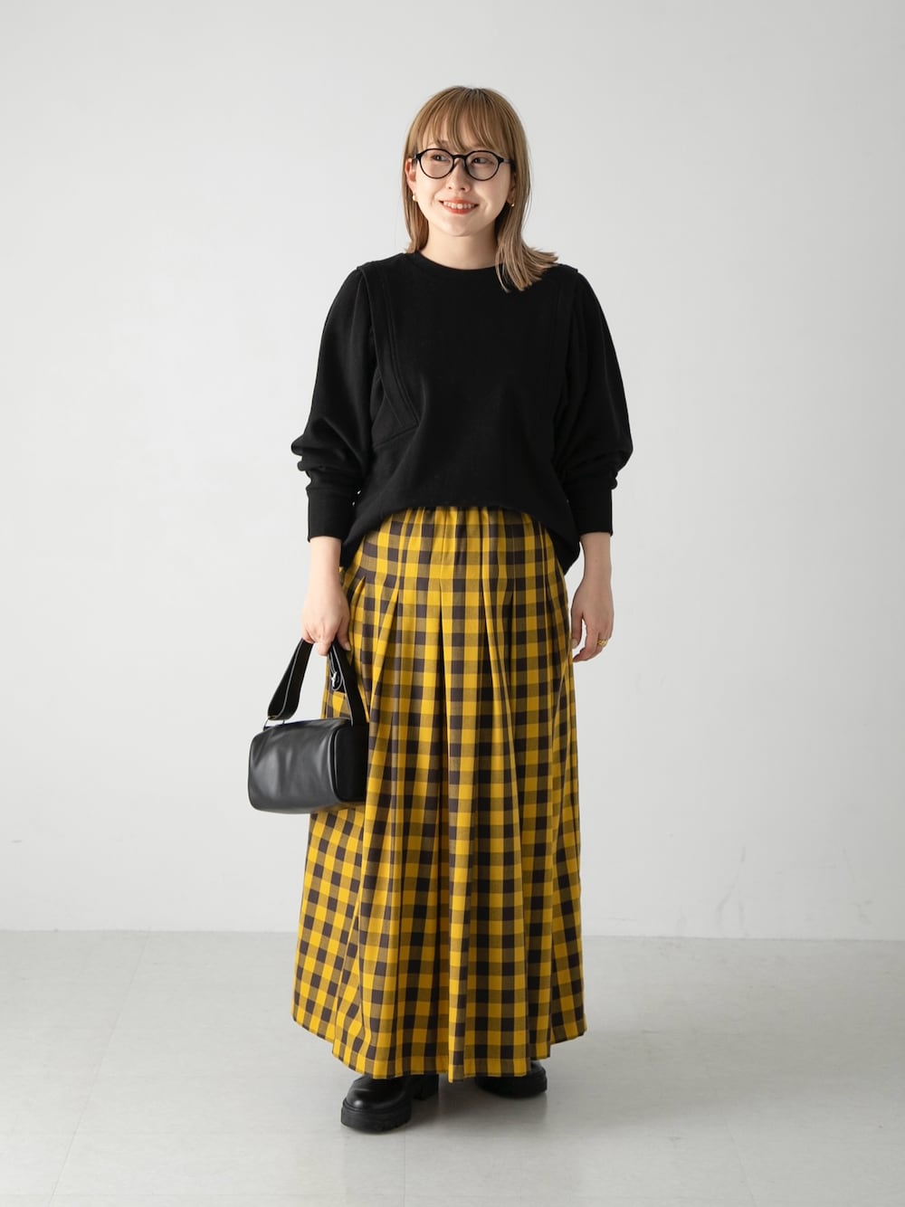袖をまくりボリューム感をたっぷり出して着用するのがおすすめです。シンプルなデザインながら袖に特徴のあるトップスなので、チェック柄やデニムなど合わせるボトムスを選びません。