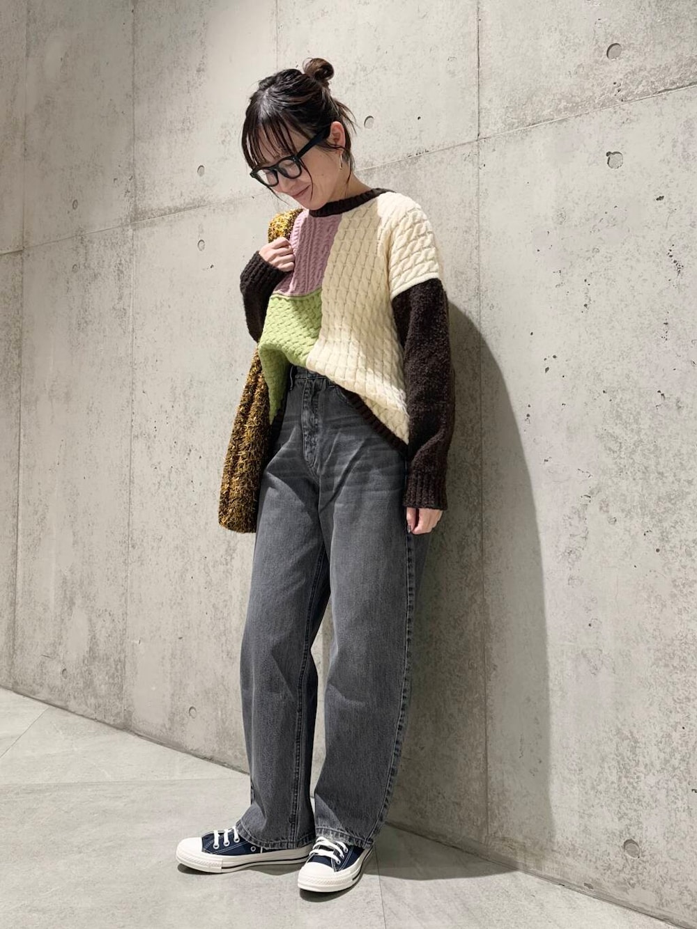 パッチワーク柄編みニットプルオーバー
