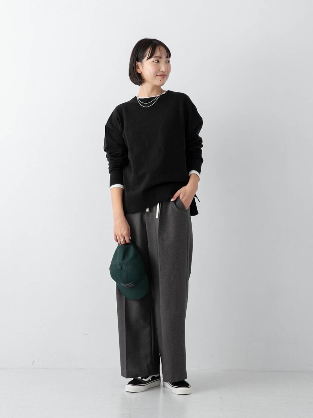 シンプルなデザインで着回し力抜群のハイゲージニット