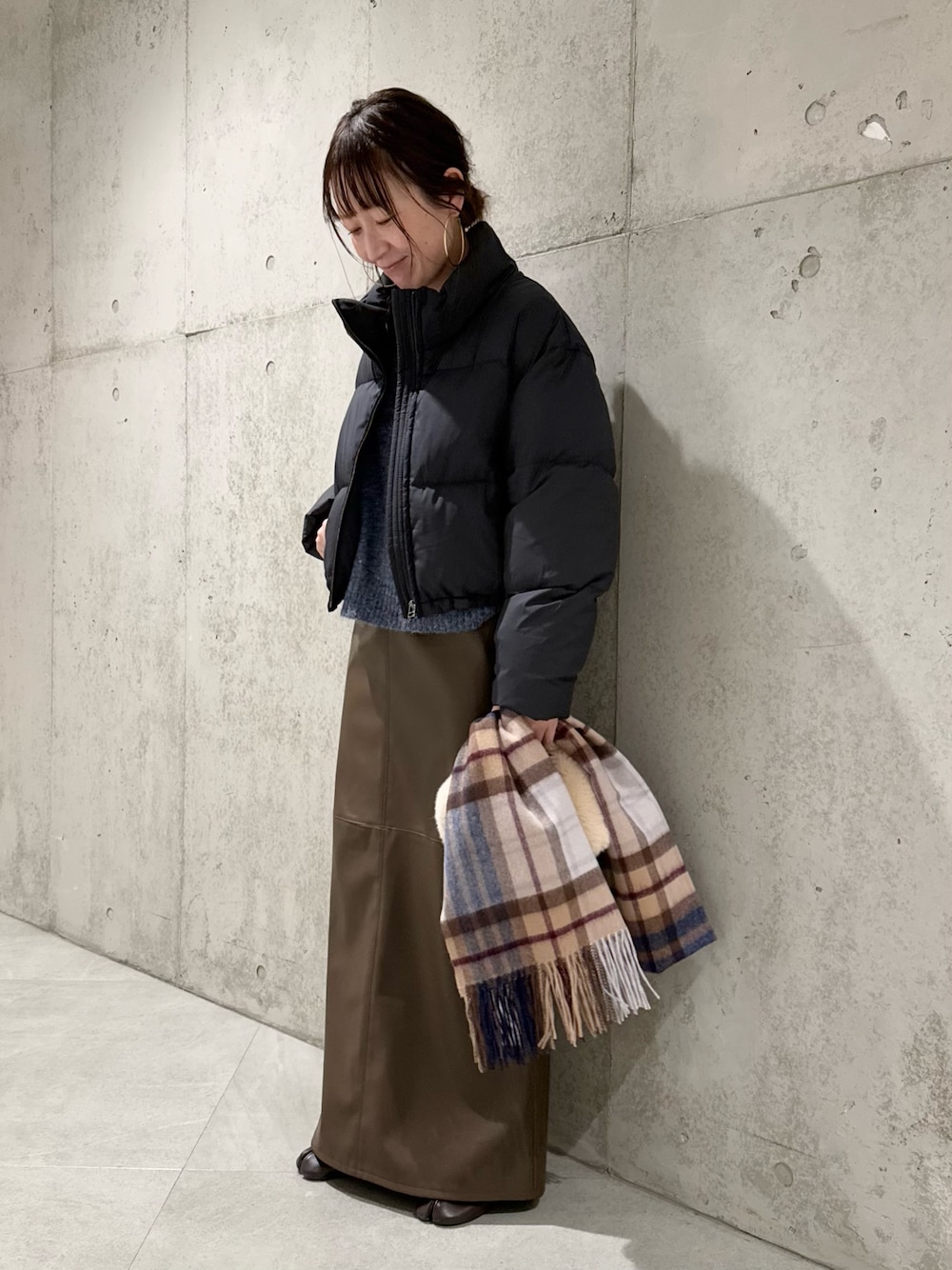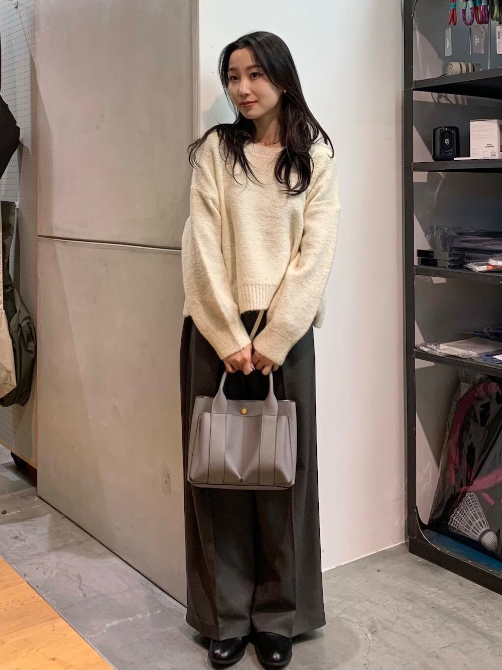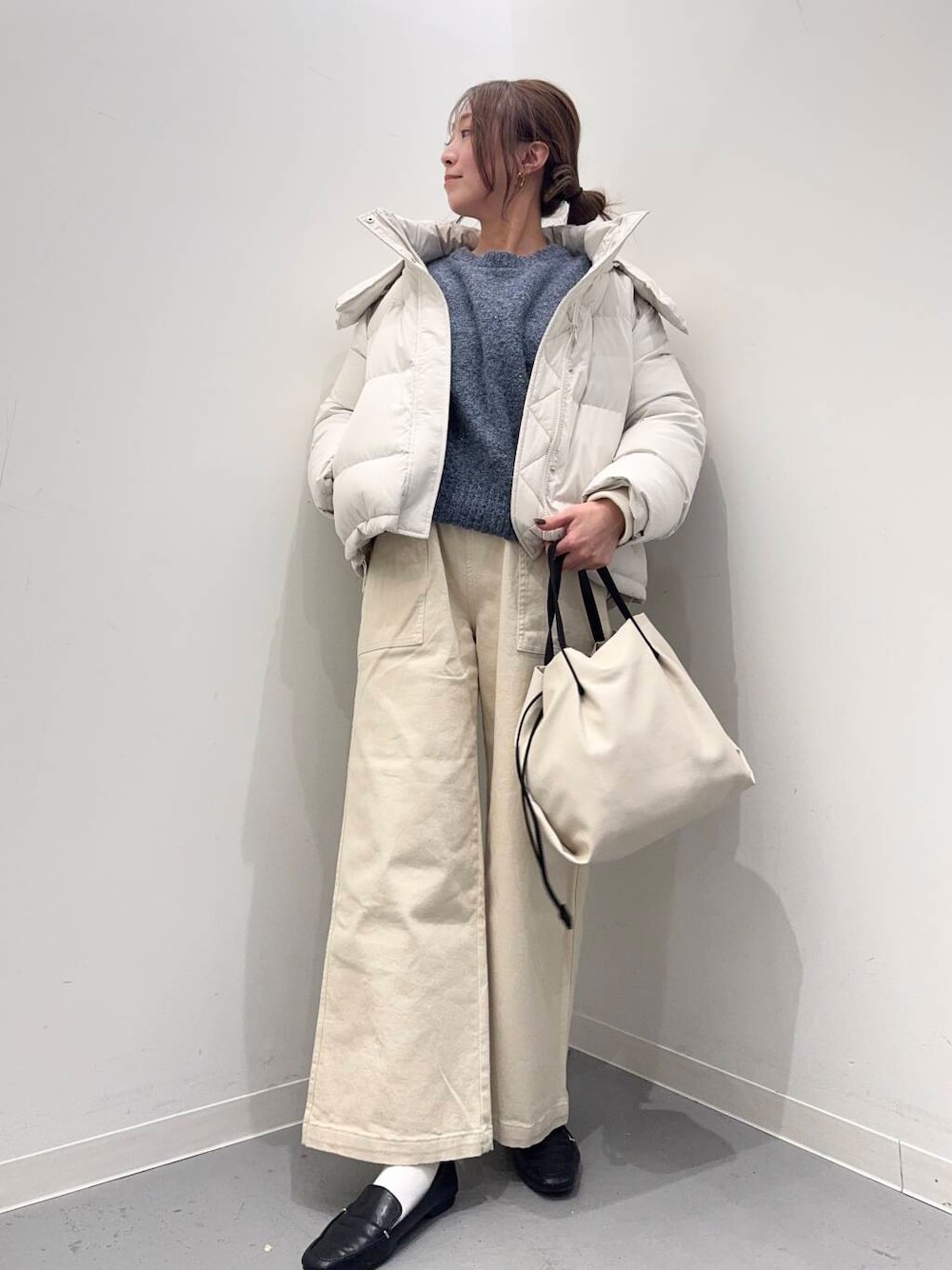 着丈は短めに設定しているので様々なボトムスと好相性◎存在感のあるトップスなので、デニムなどシンプルなアイテムと合わせるのがおすすめ。