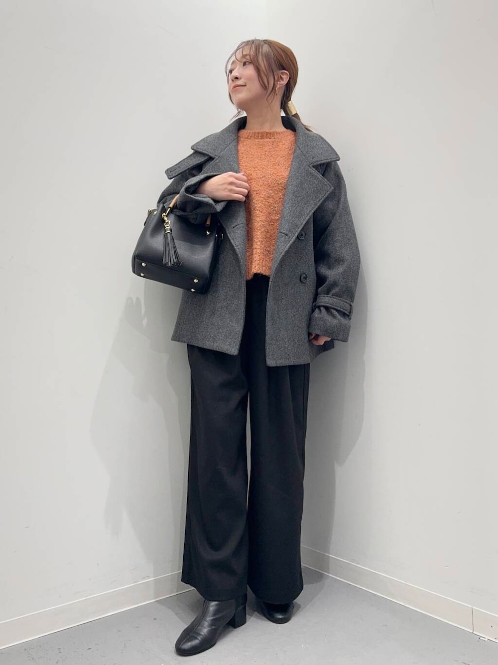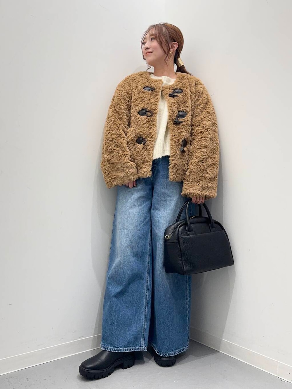 着丈は短めに設定しているので様々なボトムスと好相性◎存在感のあるトップスなので、デニムなどシンプルなアイテムと合わせるのがおすすめ。