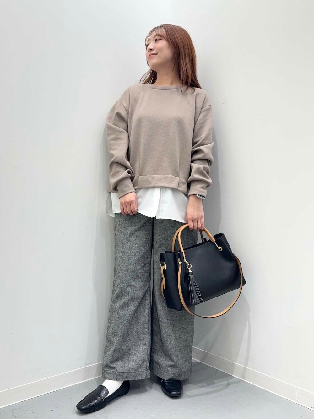 モノトーンの配色はコーデの邪魔をせず、絶妙なサイズ感で合わせるトップスを選びません。