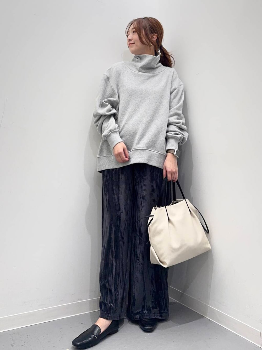 クラッシュベロア特有の表情と、裏面はなめらかで伸縮性のある素材感で肌触りも◎