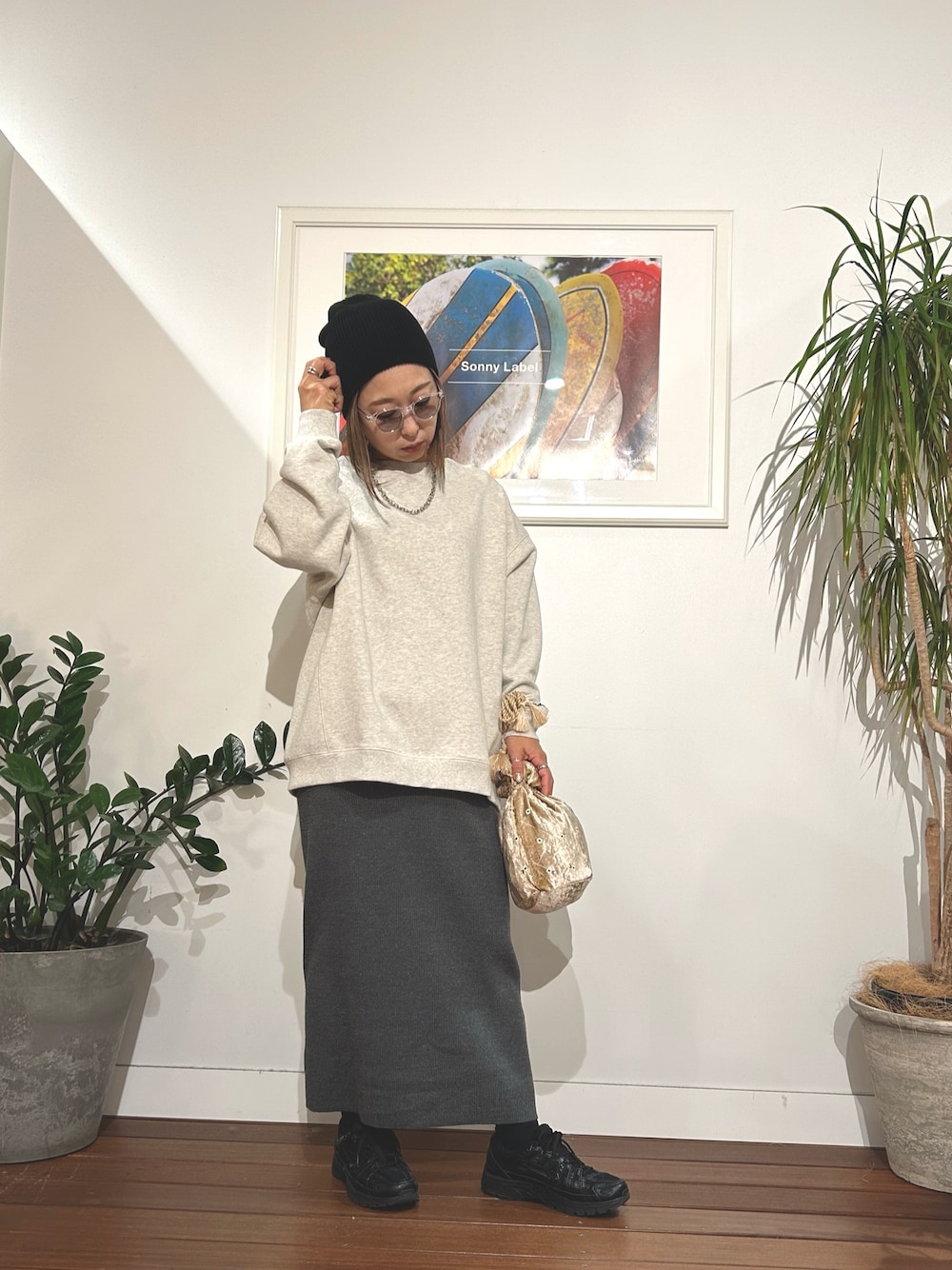控えめなラメが挑戦しやすいニットスカート