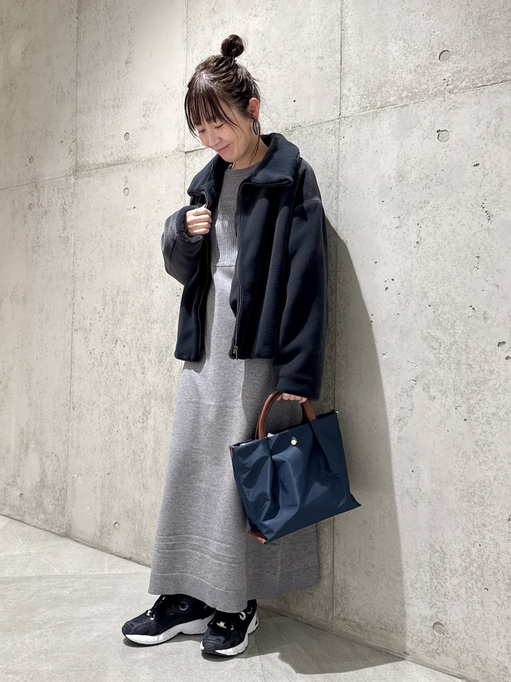 身体のラインは拾わない程よいボリューム感ながら、ストンとしたシルエットは細見え効果も抜群◎