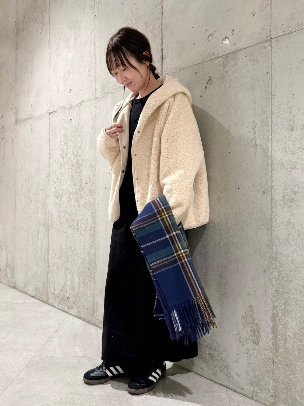 身体のラインは拾わない程よいボリューム感ながら、ストンとしたシルエットは細見え効果も抜群◎