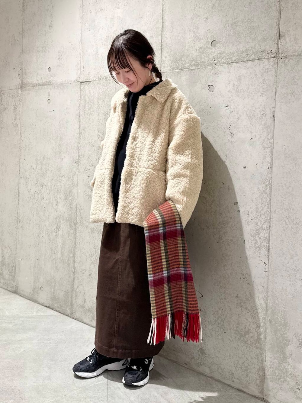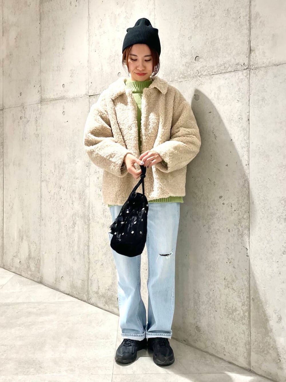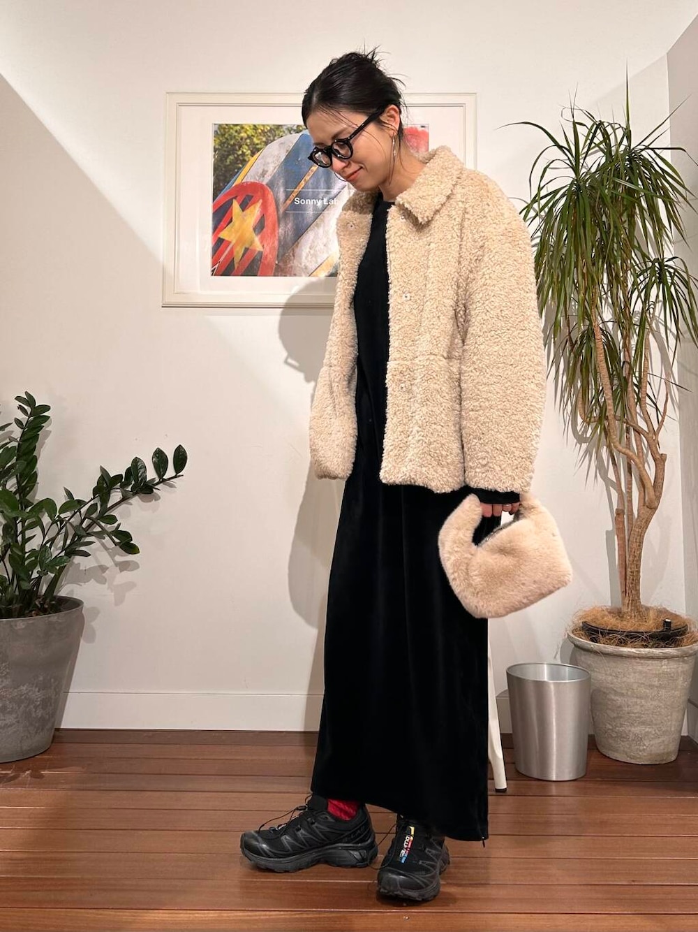 カジュアルすぎず上品なボアが華やかさを演出◎