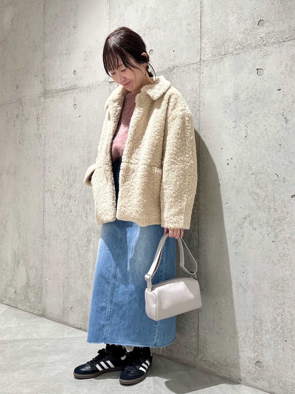 カーリーな毛足のプードルボアがキャッチーなブルゾン。