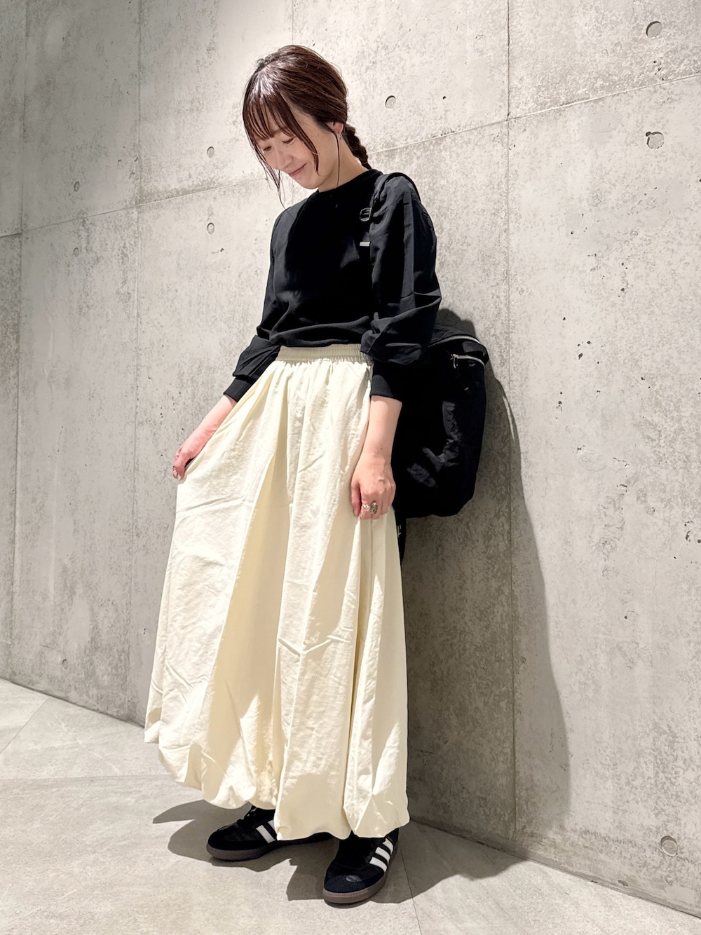 袖ボリュームが少し甘い印象なのでカジュアルなパンツと合わせるのがおすすめです。