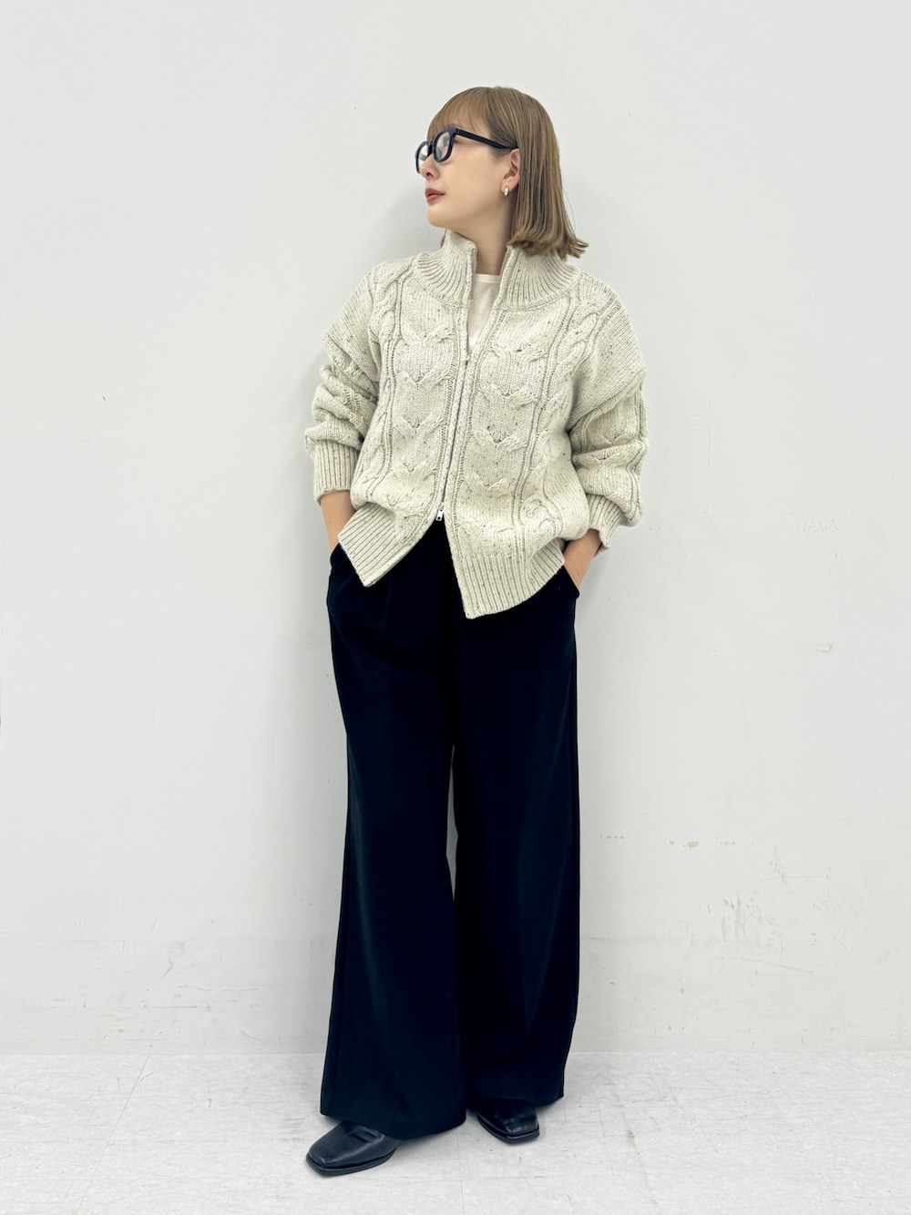 センタープレスとタックの分量感で、すっきりとした印象を与えるワイドストレートパンツ。