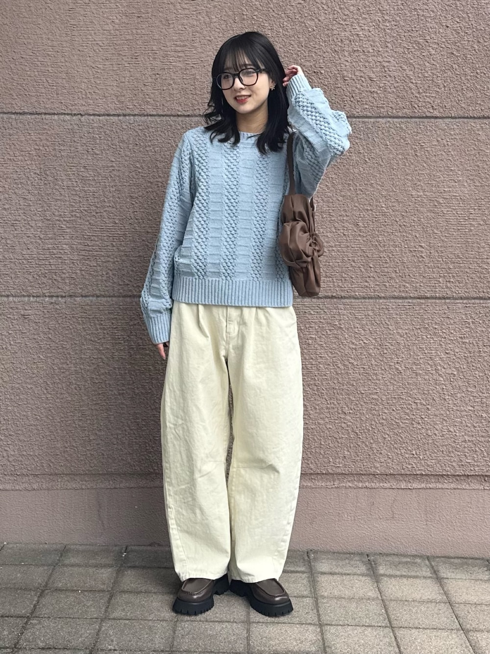 パンツはもちろん、スカートともバランス良くお召しいただけます。デザイン性のあるニットなので、デニムなどシンプルなボトムス合わせがおすすめ◎