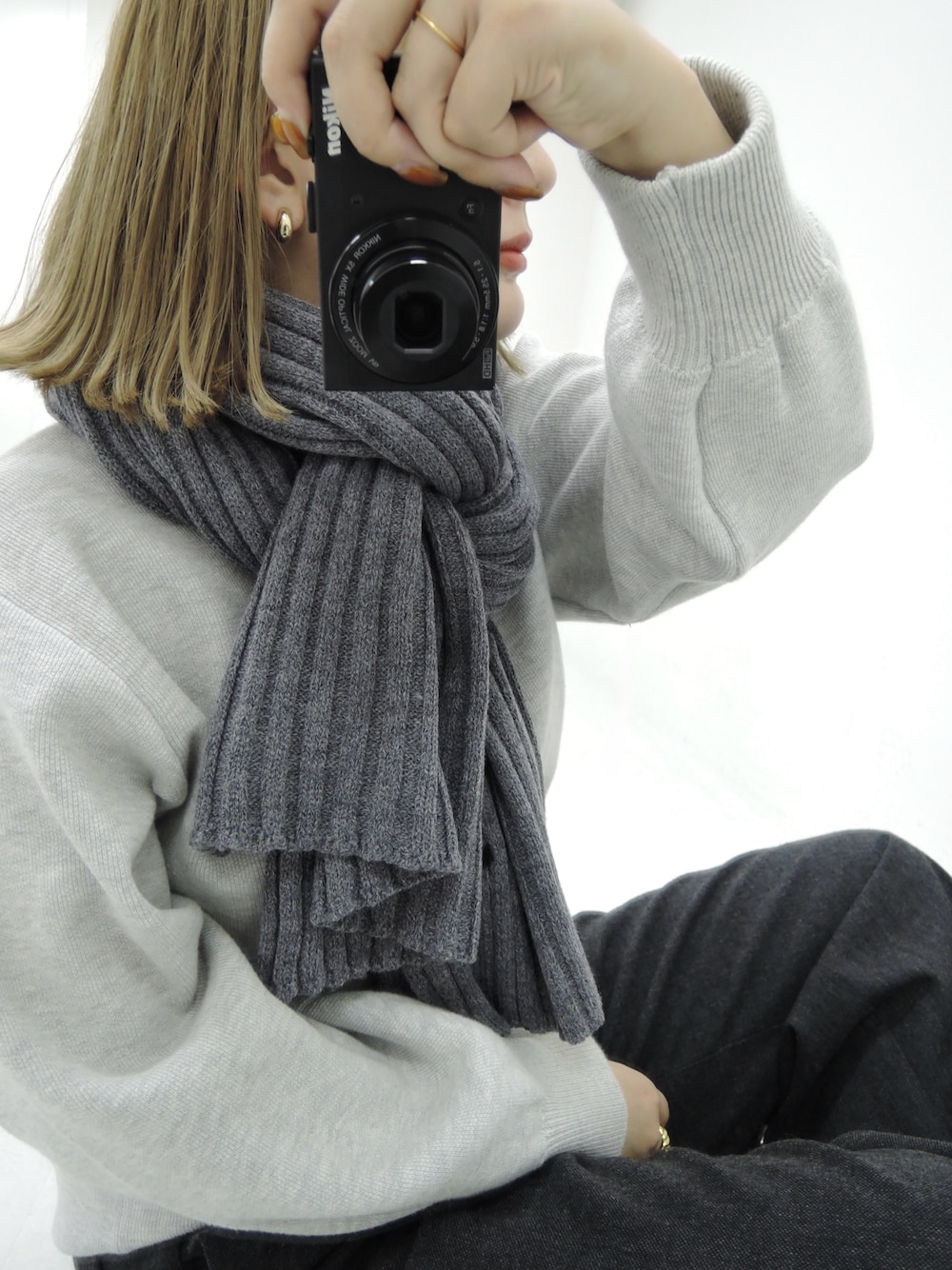 どんなコーディネートにも合い洒落見えを叶えるとご好評いただいているリブニットマフラーですが、「厚みがあって持ち運ぶときにかさばる・・」「重みがあって肩がこる・・」というご意見に応え、
