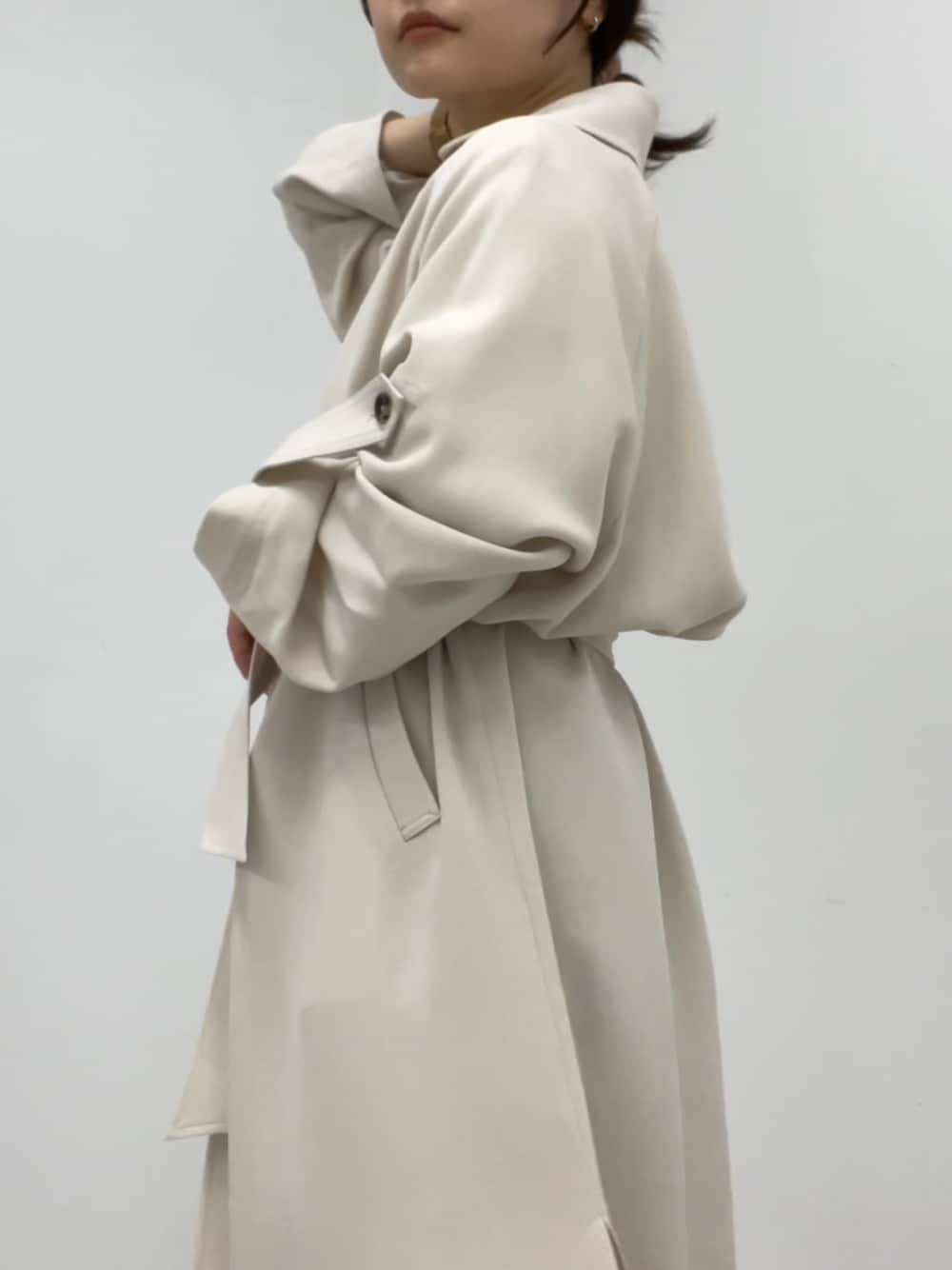 【ラフに羽織るだけで様になる、クリーンな印象のロングガウンコート】