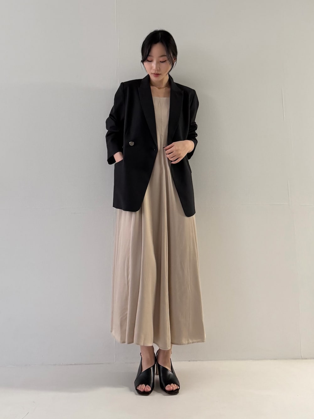 生地には、独特の光沢と奥行きのある色合いが美しいシャンブレー素材を採用。高級感のある華やかな見た目ながら、シワになりにくいのも嬉しいポイント。座り時間が長いフォーマルな場面でも、シワを気にせず美しい佇まいをキープできます。フロントにはミニマルで洗練されたフラットなメタルボタンを配置しすることで、全体をすっきりとした印象に引き締めモダンなアクセントをプラス。余計な装飾を削ぎ落としたシャープなディテールが、大人の落ち着きと知性を演出します。