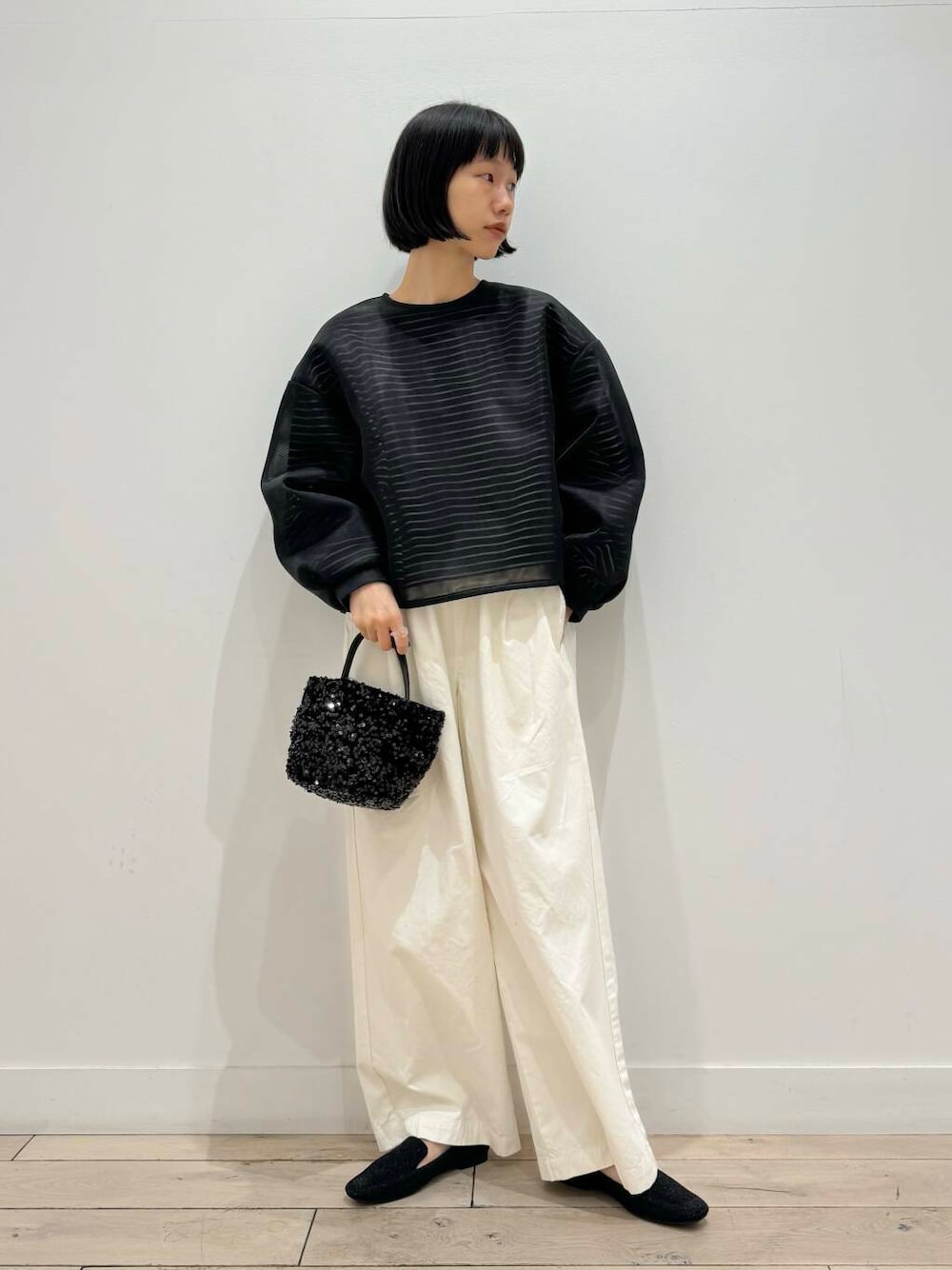 一枚で着映えする、季節の変わり目にぴったりなシアーブラウスが新登場。様々なレイヤードスタイルを楽しめる、ゆとりを持たせたシルエットに仕上げました。微光沢×ハリ感のあるシアー素材を採用することで、程良いきちんと感も演出◎バッグファスナー仕様のため、着脱もストレスなくお召し頂けます。カットソーとのレイヤードはもちろん、キャミワンピースとの着こなしもお勧め。