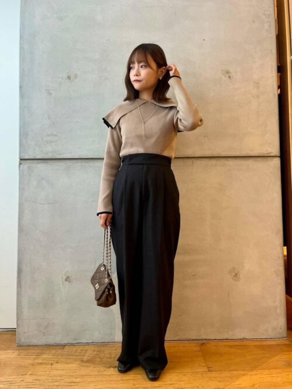 【腰位置を高く見せる、きれいめ要素を取り入れた美脚ツイードパンツ】