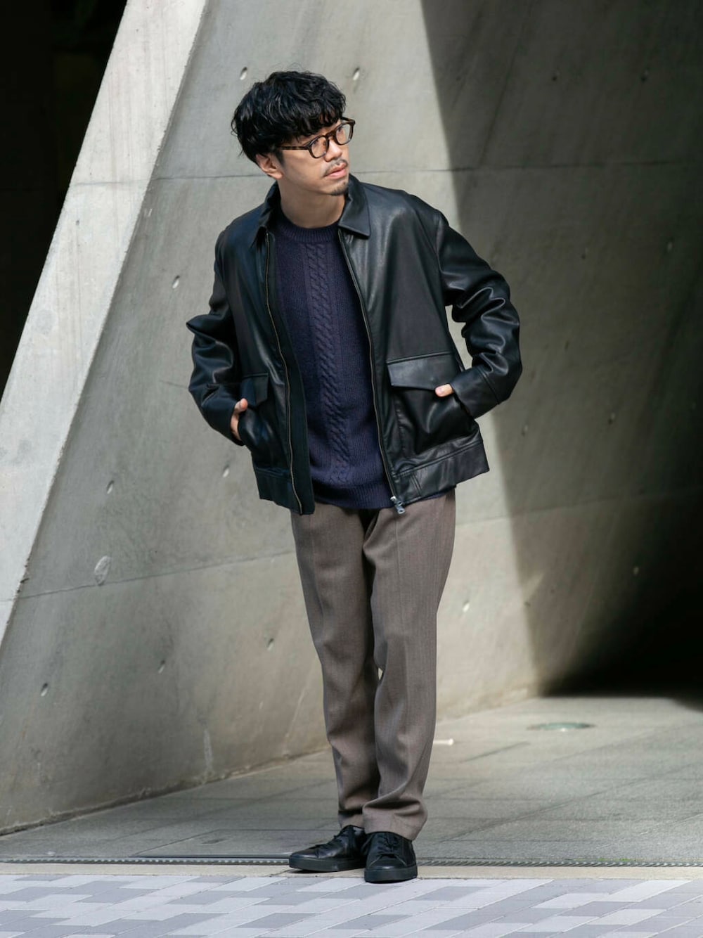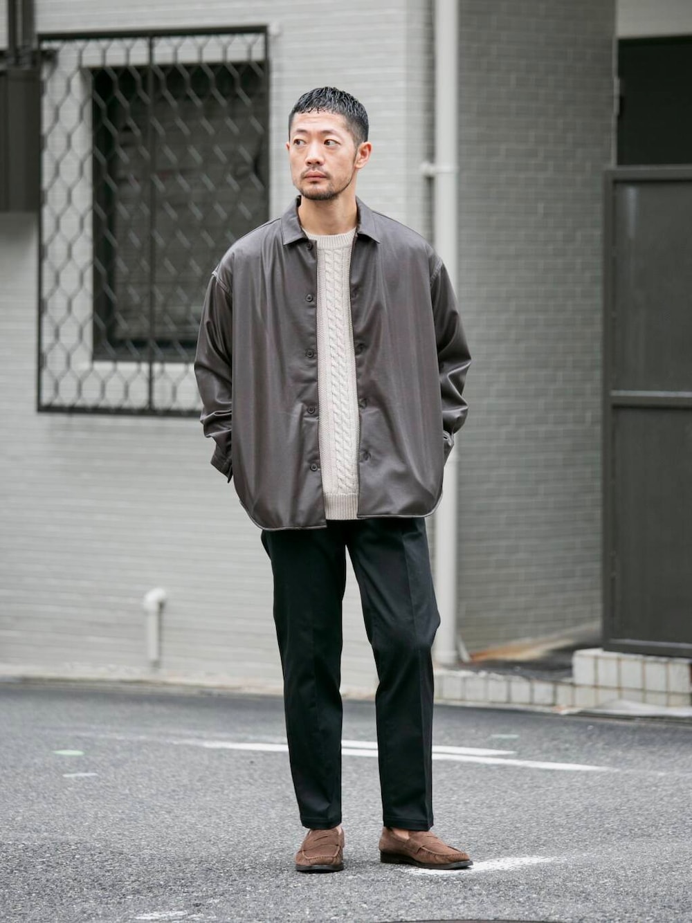 ・スラックスやコートを合わせて落ち着いた大人の雰囲気に
