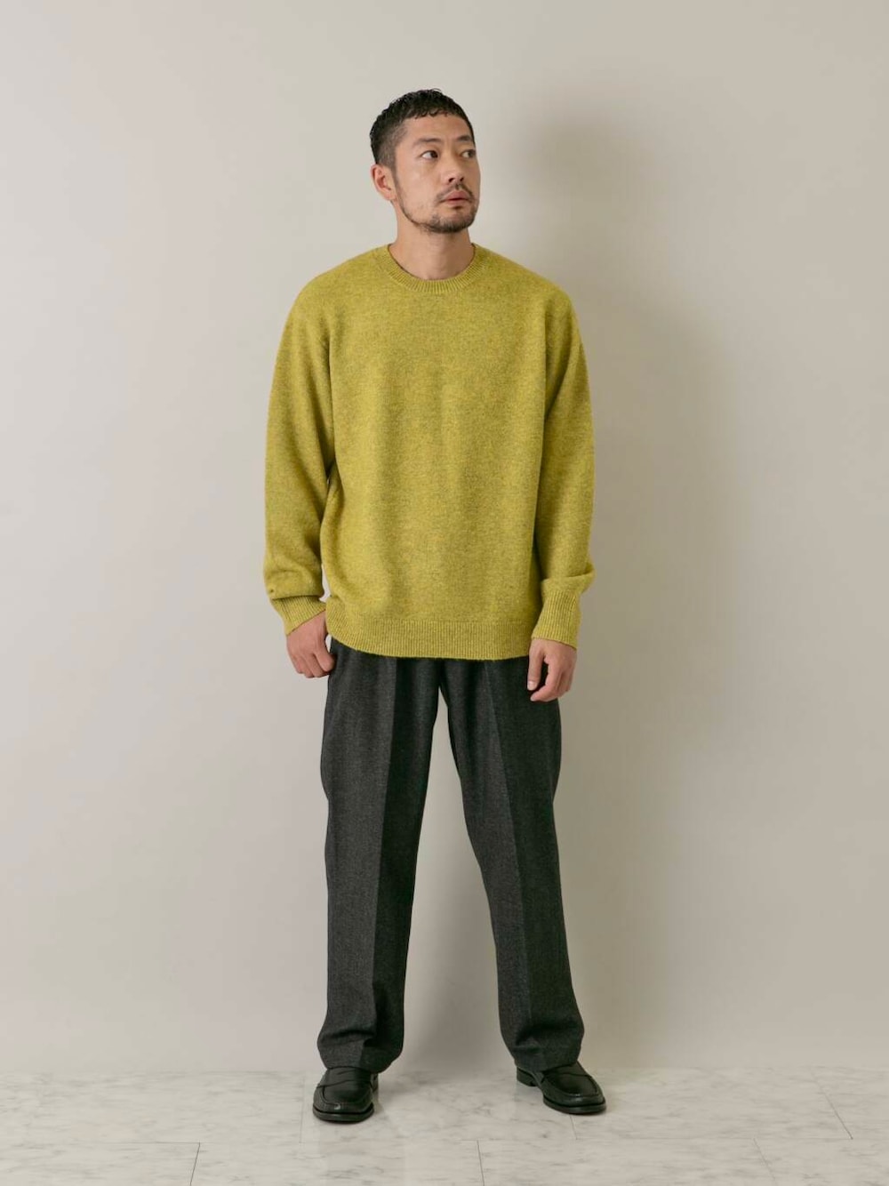 ジャケットやコート等トラッドなスタイルからラフなニット、スウェットとも相性よく大人の余裕を引き出してくれる一着です。