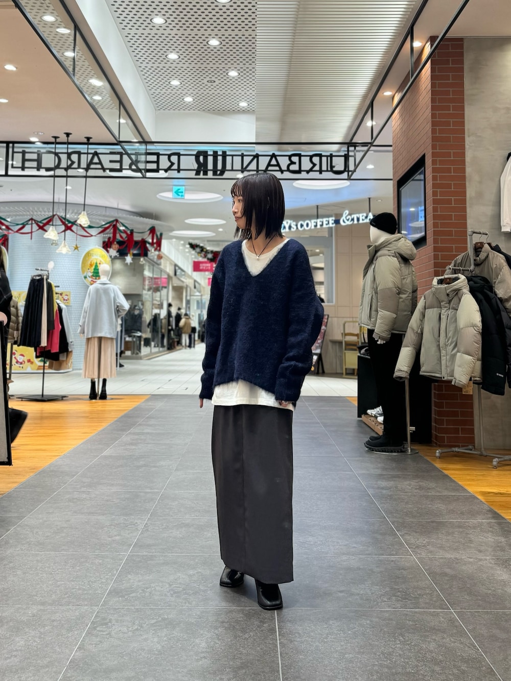 ふっくらとしたヘアリーな質感が魅力の、女性らしさ漂うVネックニット。上質なアルパカ混素材で、厚手ながら柔らかな素材感が特別な一着です。着ぶくれしないサイズ感にこだわり、深めのVネック仕様で設計しました。艶のあるスカートや、デニムパンツ等との素材感を楽しむスタイリングがお勧め。やや丸みのあるコクーンシルエットで抜け感たっぷりの、今季一枚は押さえておきたいアイテムに。