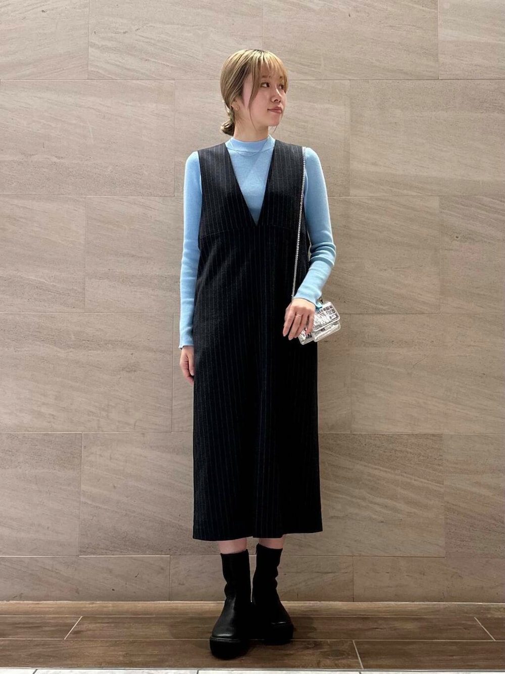 【カジュアルながら、品のある雰囲気を生み出すストライプワンピース】