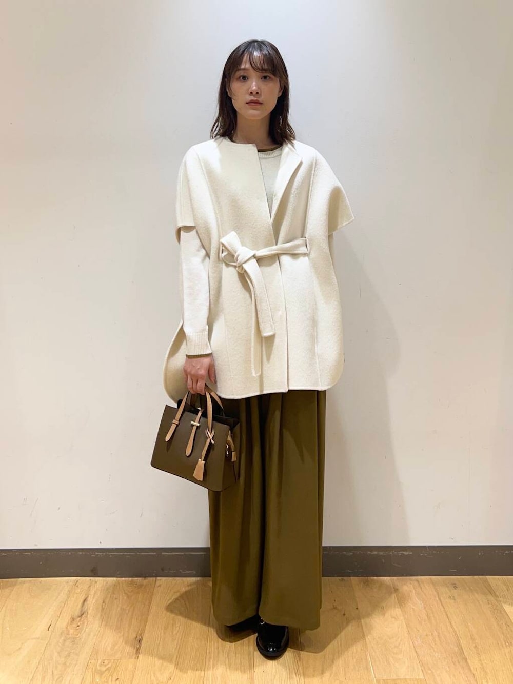 ROSSOオリジナルの高品質なウールカシミヤを使用した、リバーポンチョコートが新登場。保温に優れ、軽くて柔らかい肌触り・上品な風合いが特徴です。共地リボン付きのため、ウエストマークしたスタイリングも可能。フロントを閉じると釦が見えない仕様となり、ベスト風にもお召し頂けます。こなれ感を演出するサイドスリット×着丈に前後差をつけ、肩の力を抜いた休日コーデにお勧めの一品に。