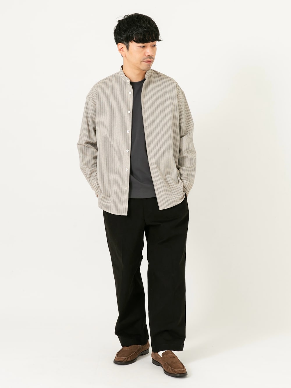 滑らかな質感と適度なハリを兼ね備えた上品な生地感は、カジュアルからフォーマルまで幅広いシーンで活躍。