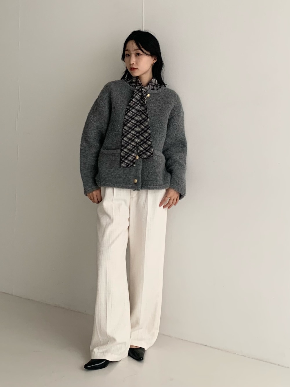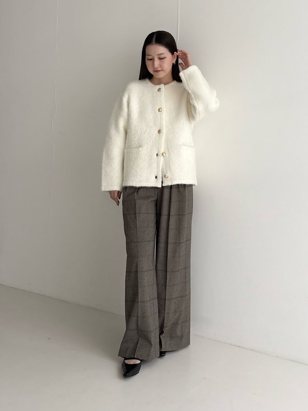 ふっくらとしたブークレ素材で仕立てた、柔らかな着心地が魅力のニットジャケット。ウール混で温かみがありながらも程よく軽やかな着心地で、上からコートなどをを羽織っていただきやすいのもポイントです。程よくコンパクトなサイズ感は、ボリュームのあるスカートやワイドパンツとも相性抜群。さっと羽織るだけで上品な印象を演出します。冬のアウターよりも軽く羽織れてロングシーズン着用可能な一着。