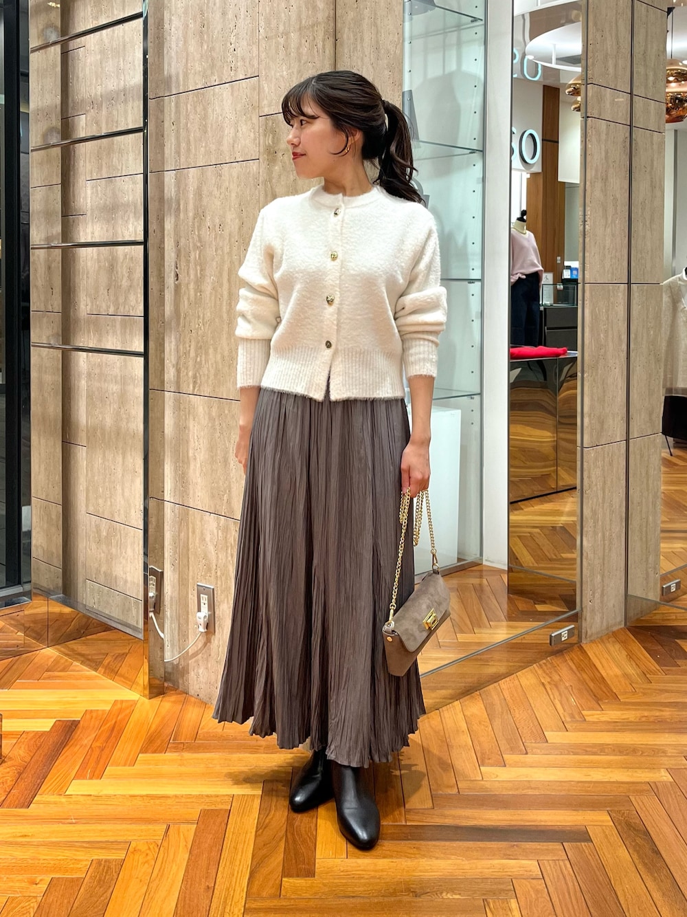 ふんわりと柔らかで暖かみのあるモヘアタッチ素材を使用し、肌触りが心地よく見た目にも華やかな印象に仕上がりました。短めのクロップド丈が今年らしさを演出し、ハイウエストのボトムスと合わせるだけで、自然とスタイルアップが叶います。ややゆとりのある袖と身頃が、気負わない大人のリラックス感を演出。前立てにあしらわれた、ひとつひとつデザインが違うゴールドボタンがポイント◎アクセサリーをつけなくても顔周りを華やかに見せてくれるデザインです。Tシャツやブラウスにさらっと羽織るのはもちろん、ボタンを閉めてプルオーバーのように着こなすのもおすすめ。きれいめなプリーツスカートと合わせれば、お出かけスタイルに。ワイドパンツやデニムと合わせて、大人カジュアルを楽しむのもおすすめです。