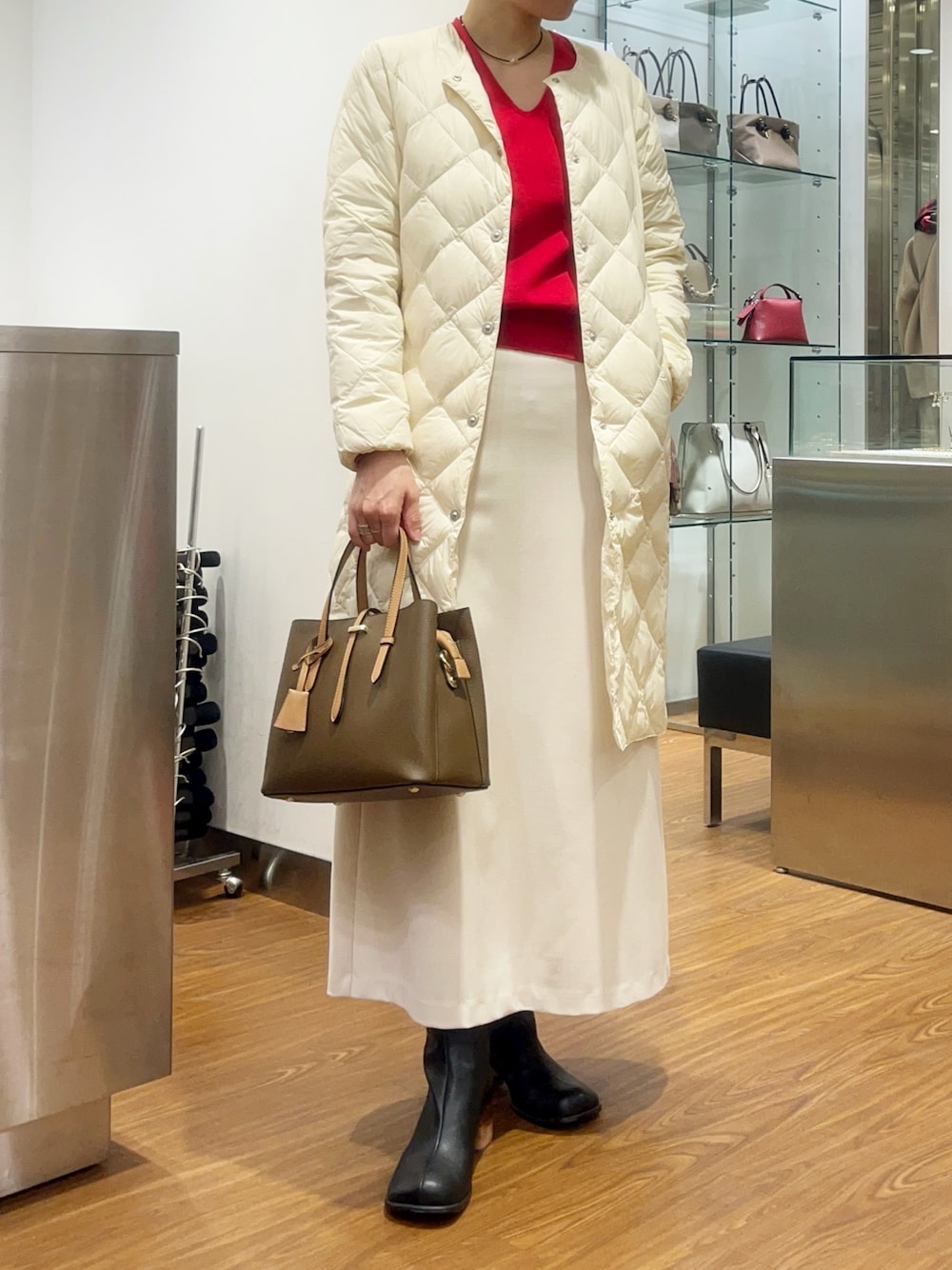 大変好評をいただいている、CITY LINEの女性用ロングダウンジャケットです。脇ファスナーを開閉することで、スリットが入り幅広いレイヤースタイルが楽しめます。CITY LINEの生地は軽さや吸い付くような肌触りを追及し、斜めキルトを採用することで、シックでクラシカルなイメージに仕上げています。