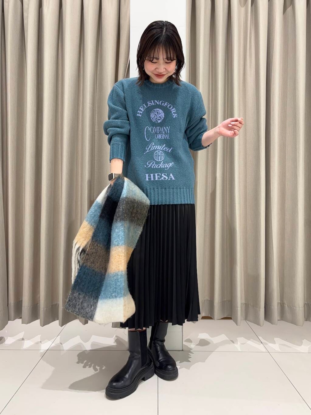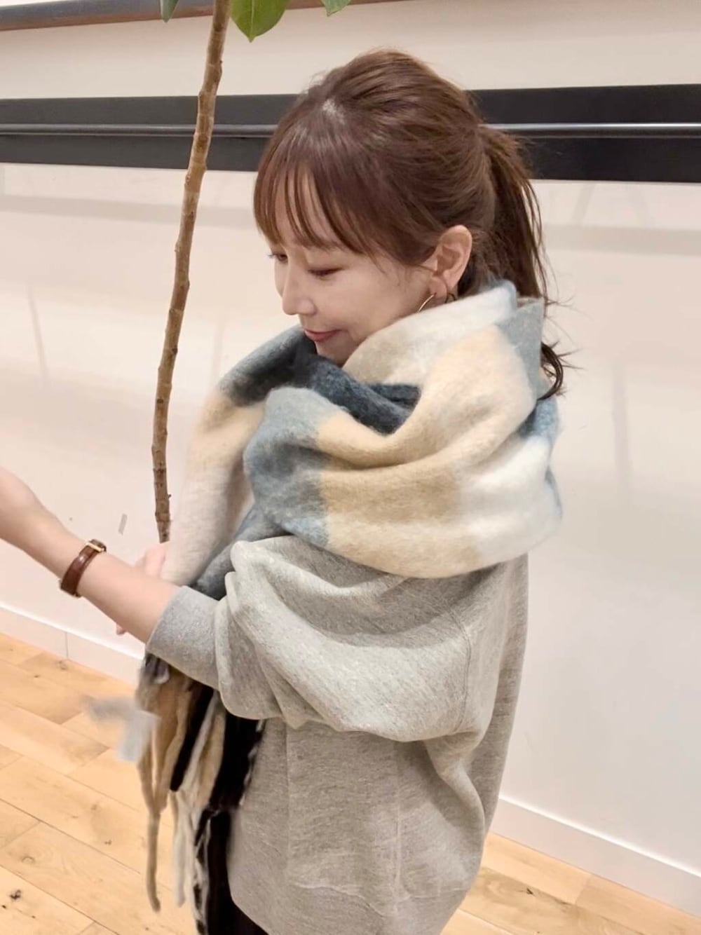 ニュアンスカラーの絶妙な配色のチェックは、コーデの差し色にもなり、暗くなりがちな秋冬のコーディネートを彩ります。