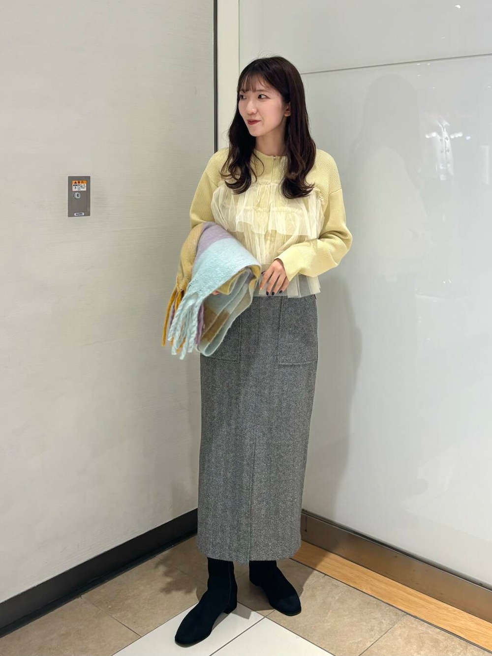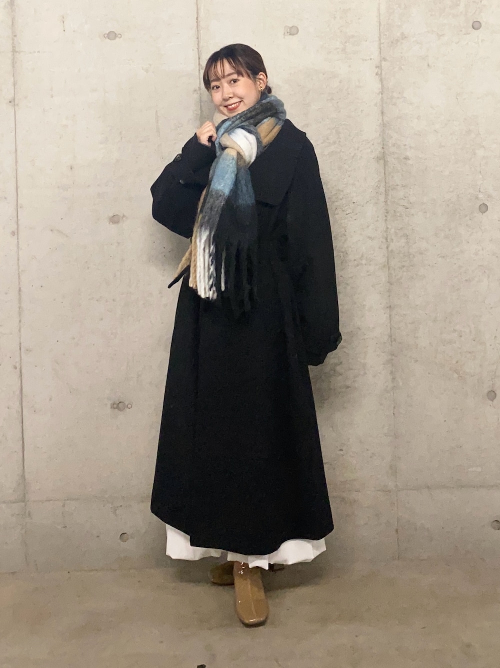 ふんわりとしたボリューミーなマフラーで、首回りの防寒はバッチリです。