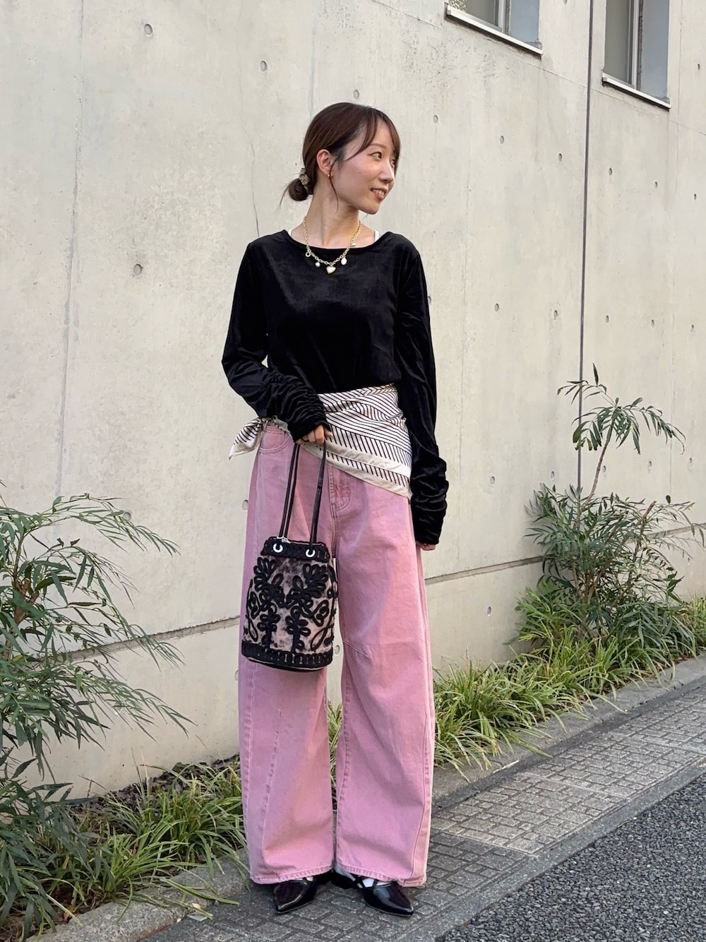 シンプルなトップスも一気に華やかな印象に早変わりします。