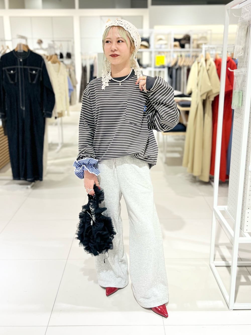 品なストライプ柄が、つけるだけでいつものヘアスタイルをぐっとおしゃれな印象に。